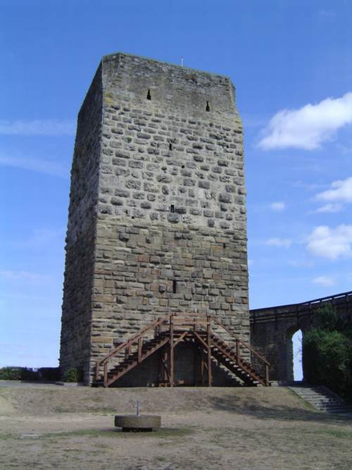 Der Rote Turm ist der östliche Bergfried der staufischen Kaiserpfalz, erbaut um 1200. Als letzte Zufluchtsstätte des Burgherrn ist er besonders aufwändig eingerichtet, unter anderem mit romanischem Kamin und Abortanlage.