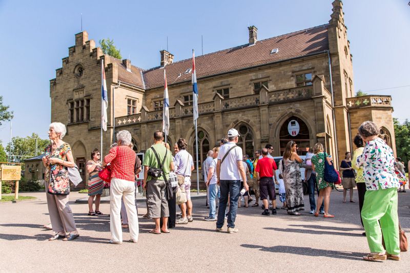Im Bahnhofsgebäude befindet sich ein Restaurant mit Cocktail-Bar und großem Biergarten.