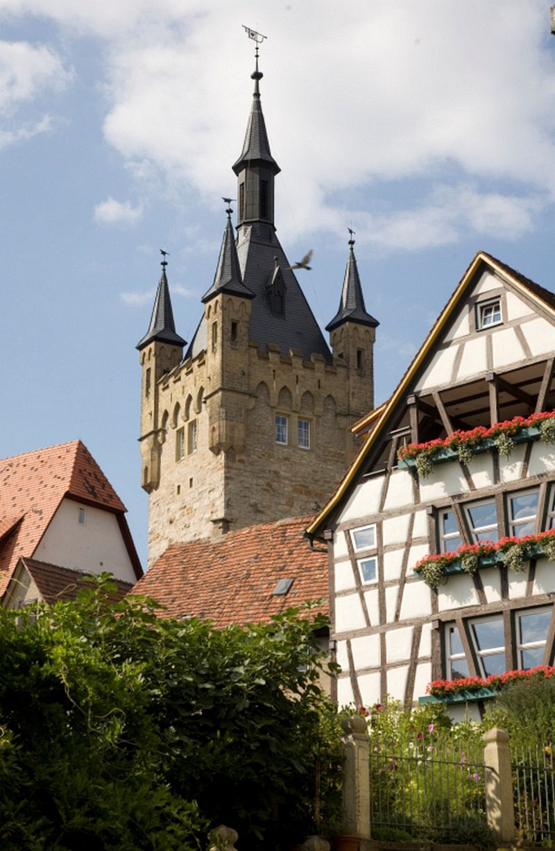 Der Blaue Turm ist das Wahrzeichen der Stadt. Er wurde um 1170 als westlicher Bergfried der Königspfalz errichtet und diente der ehemaligen Reichsstadt Wimpfen als Hochwachtturm. Den Namen hat er von seinem bläulich schimmernden Schieferdach. Er beherbergt eigens eine Wohnung für den Türmer, die bis heute genutzt wird. Damit hat Bad Wimpfen hat heute die älteste, ununterbrochene Türmertradition Deutschlands.Der 58 Meter hohe Turm ist für Besucher geöffnet und bietet einen herrlichen Ausblick ins Neckartal.