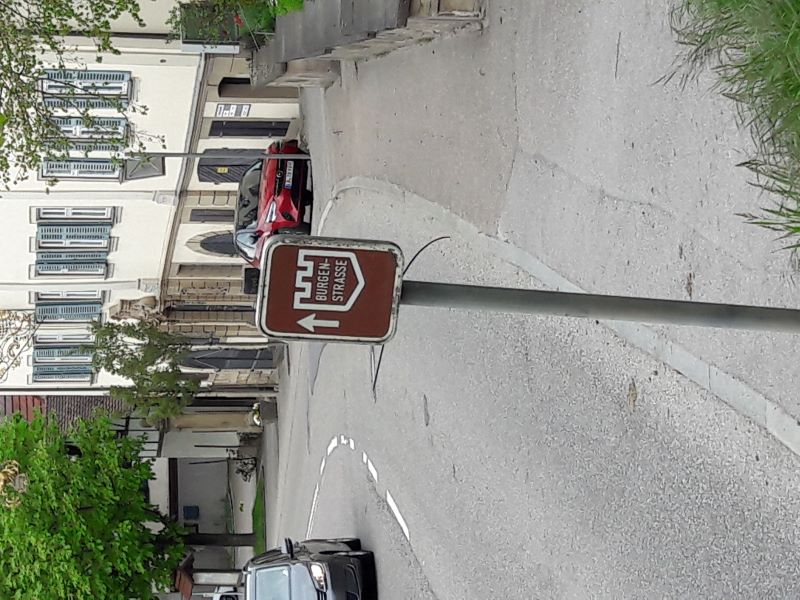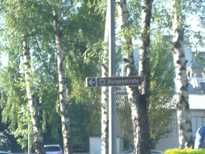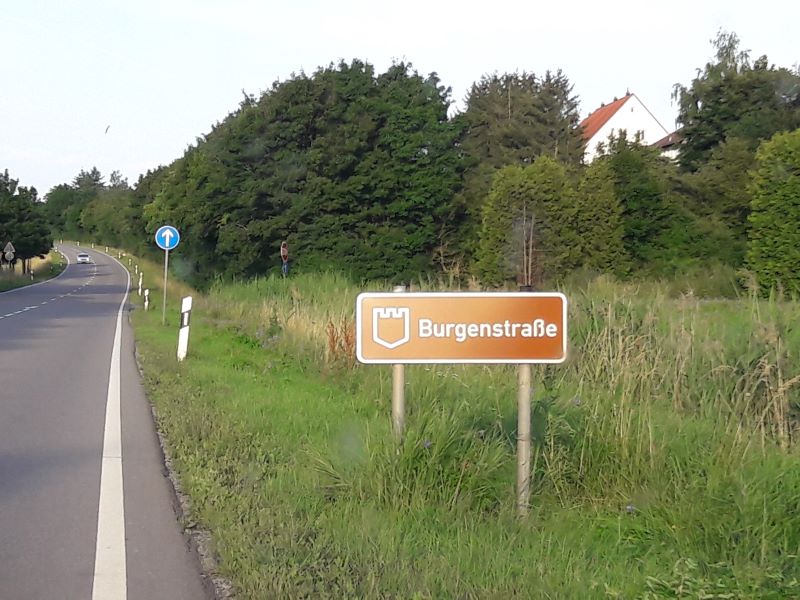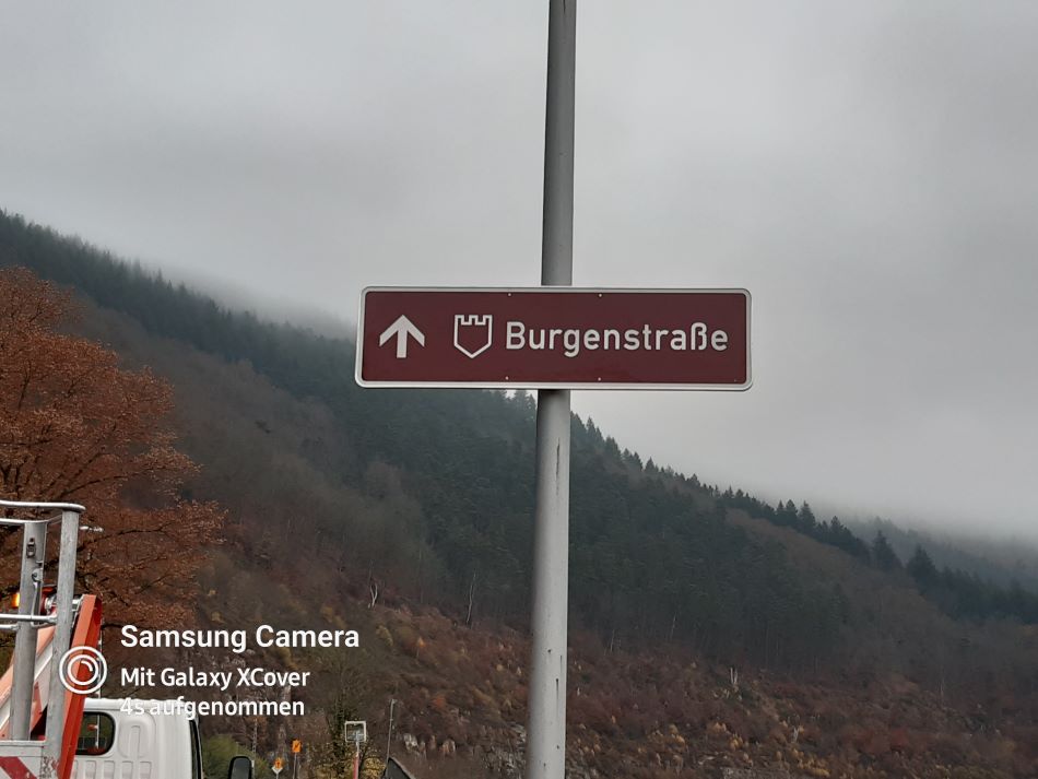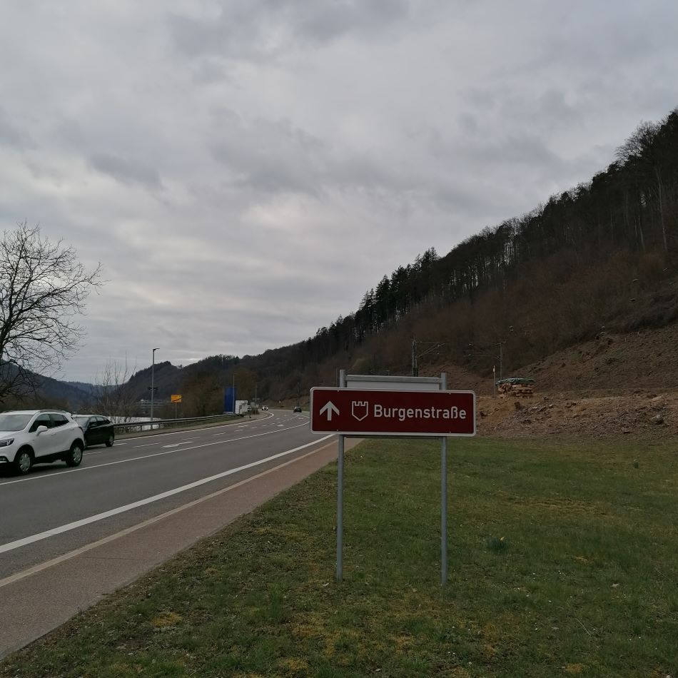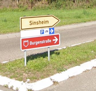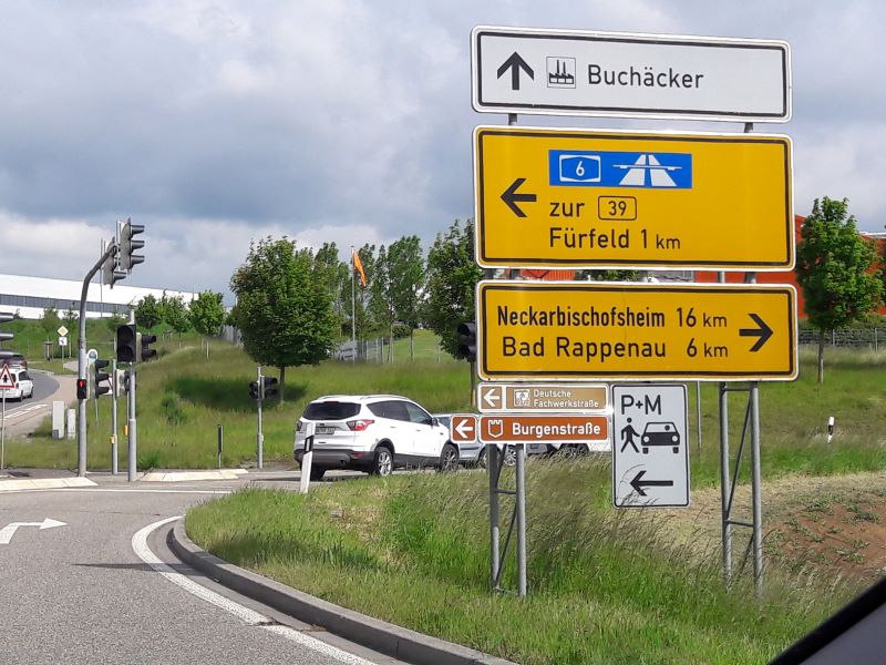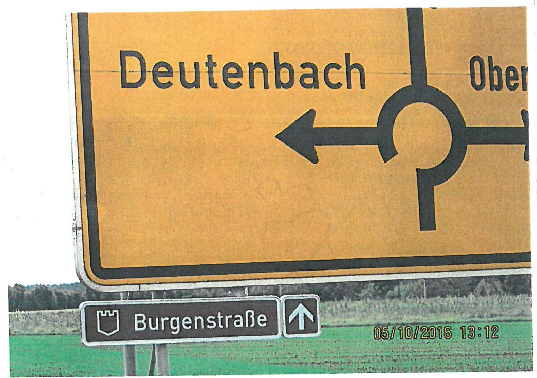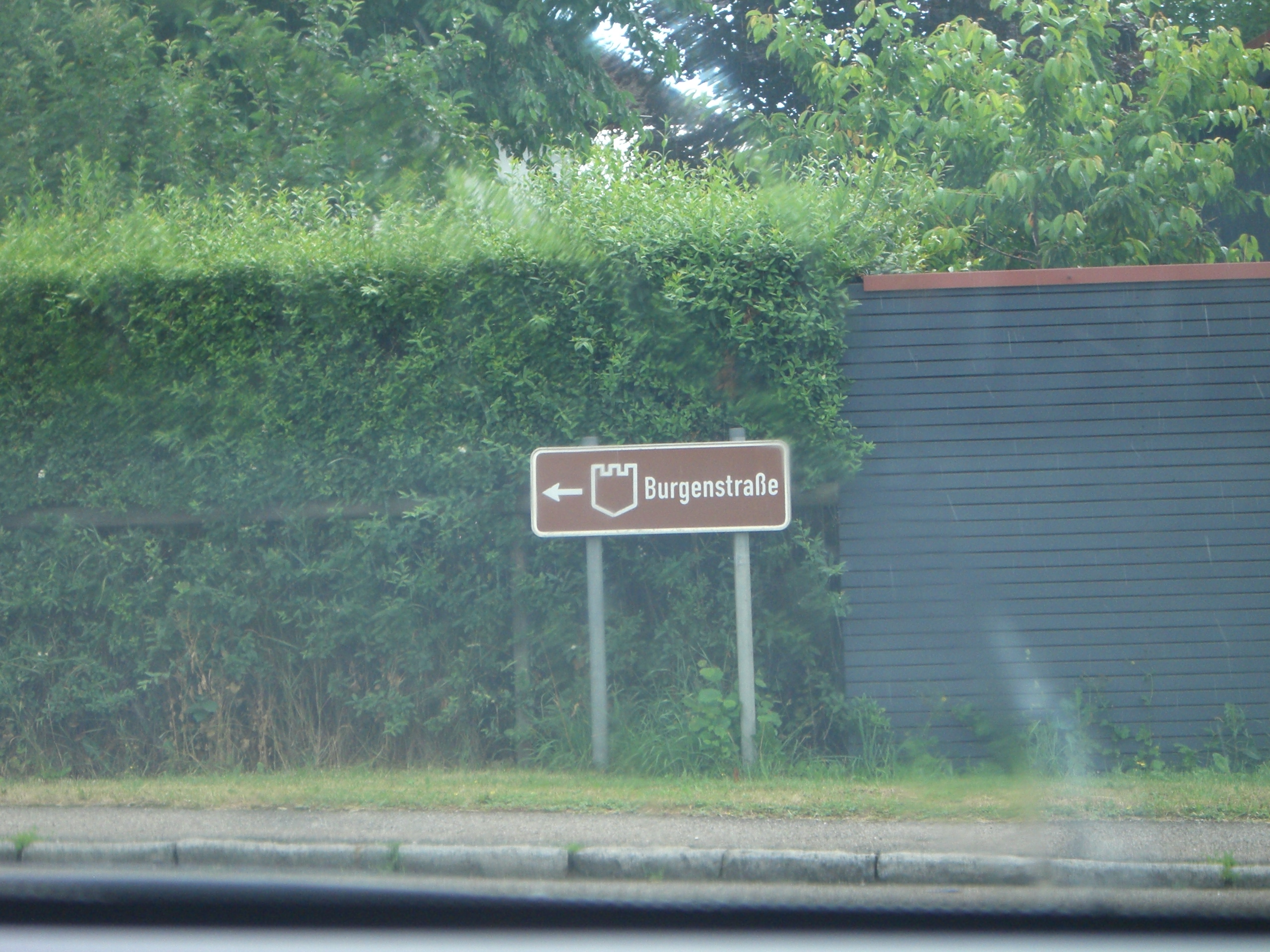 Aufstellung: AUSTAUSCHEN Standort: Bismarckstraße, Bereich vor Barockschloss Mannheim, Startschild Burgenstraße Pfeil: GERADEAUS (kann bleiben) Bereisung: 25.06.2017 Großes Schild, Richtung Nürnberg, mit Linkspfeil Kreuzung der Straße aus Edingen-Neckarhausen mit B 37 nach Heidelberg
