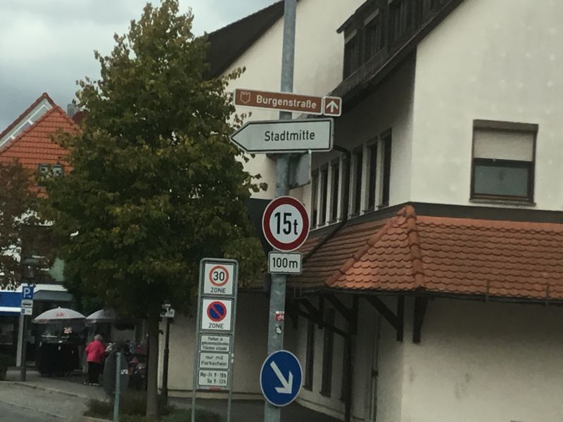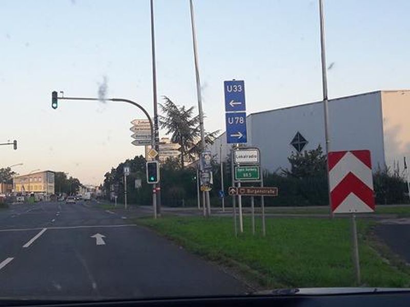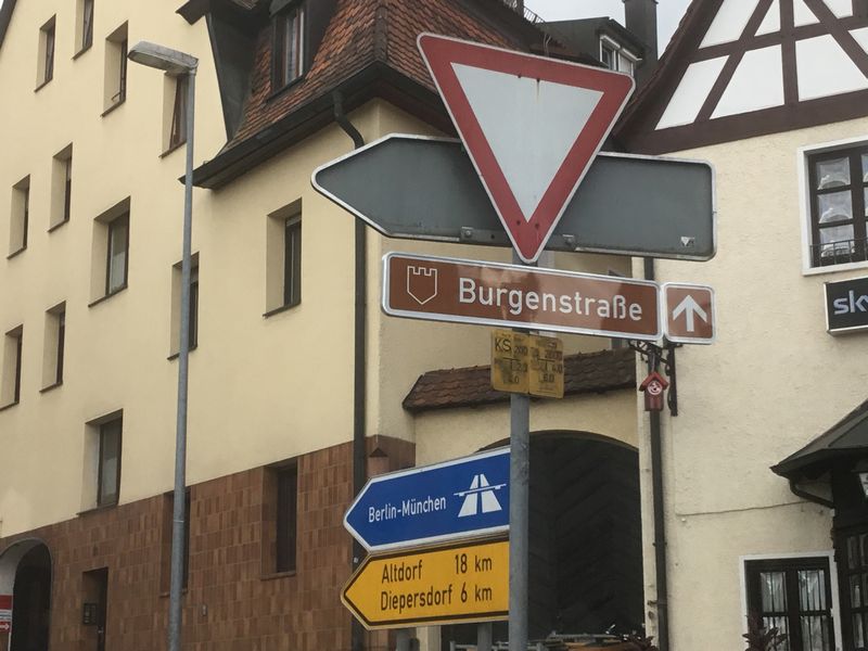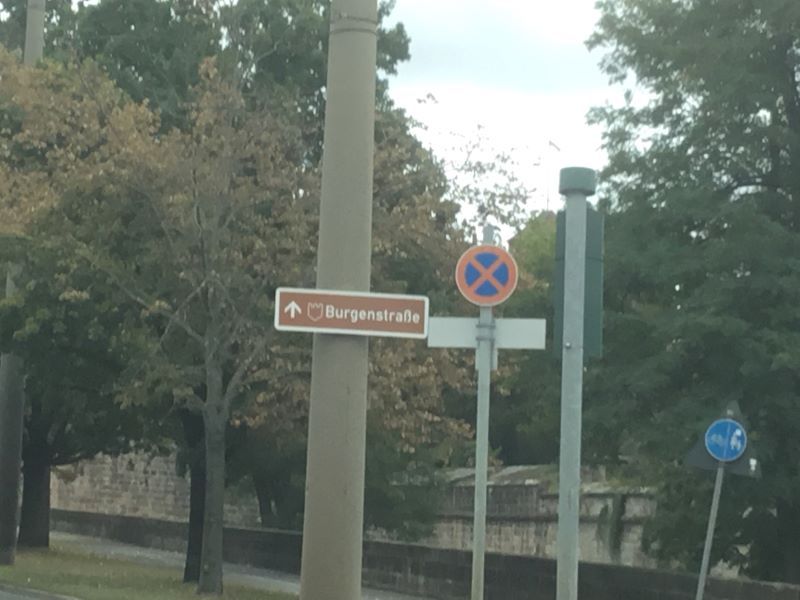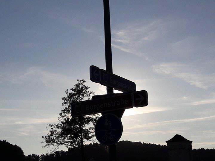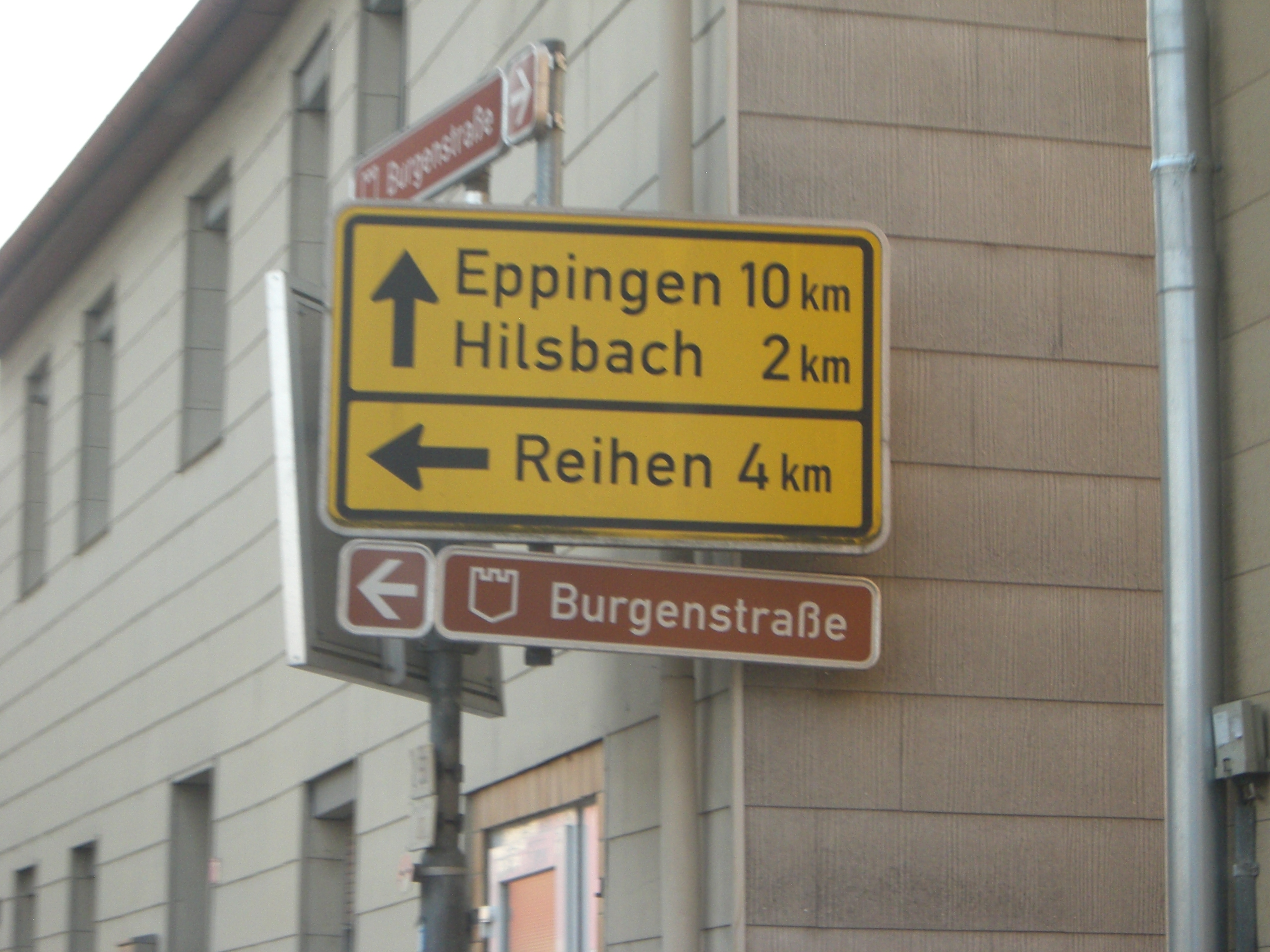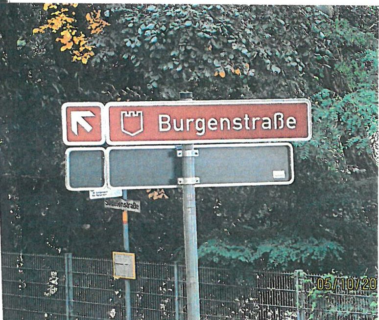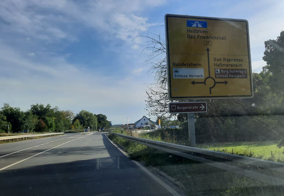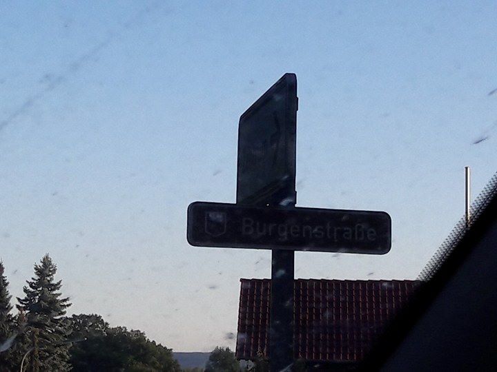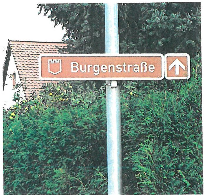 Aufstellung: AUSTAUSCHEN Standort: Bismarckstraße, Bereich vor Barockschloss Mannheim, Startschild Burgenstraße Pfeil: GERADEAUS (kann bleiben) Bereisung: 25.06.2017 Großes Schild, Richtung Nürnberg, mit Linkspfeil Kreuzung der Straße aus Edingen-Neckarhausen mit B 37 nach Heidelberg