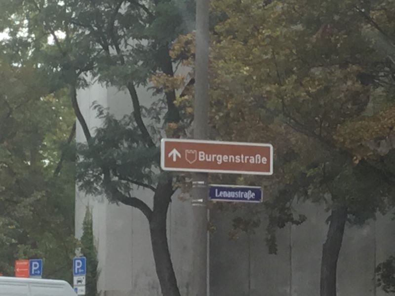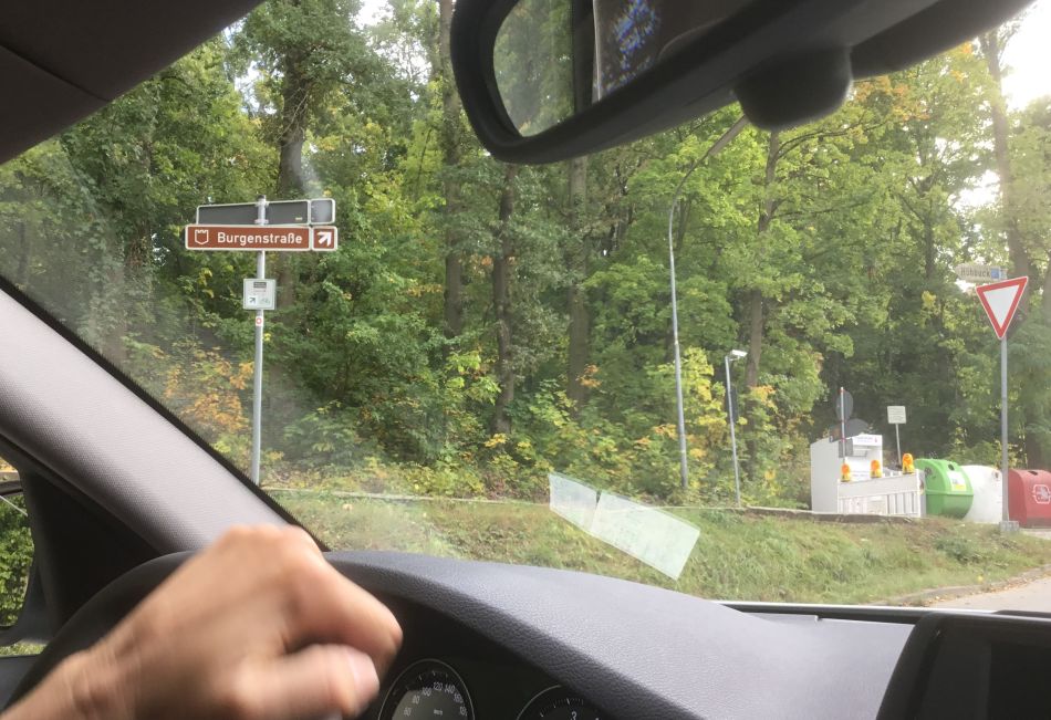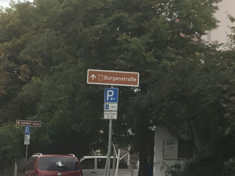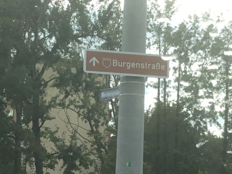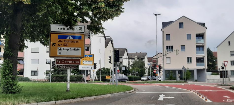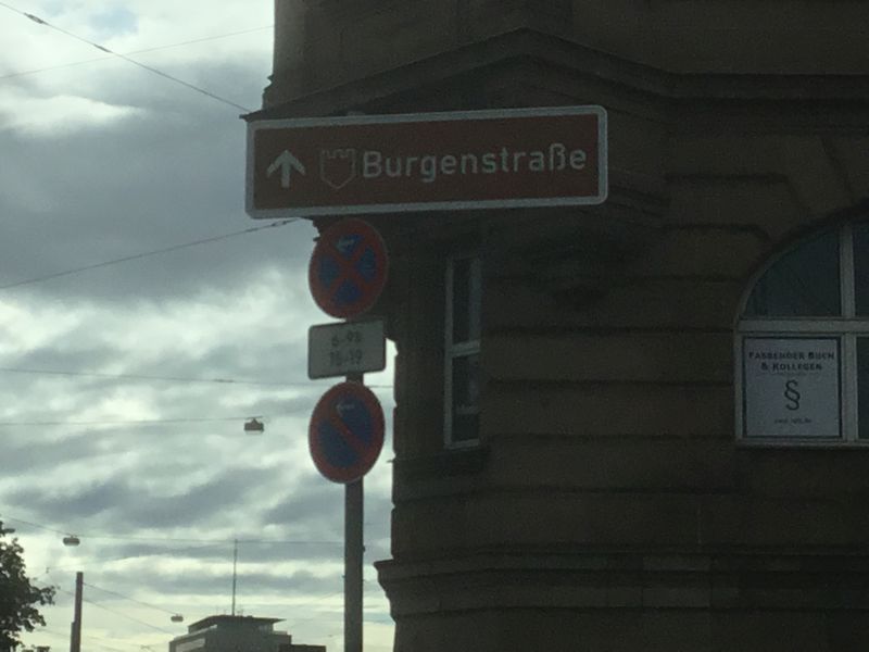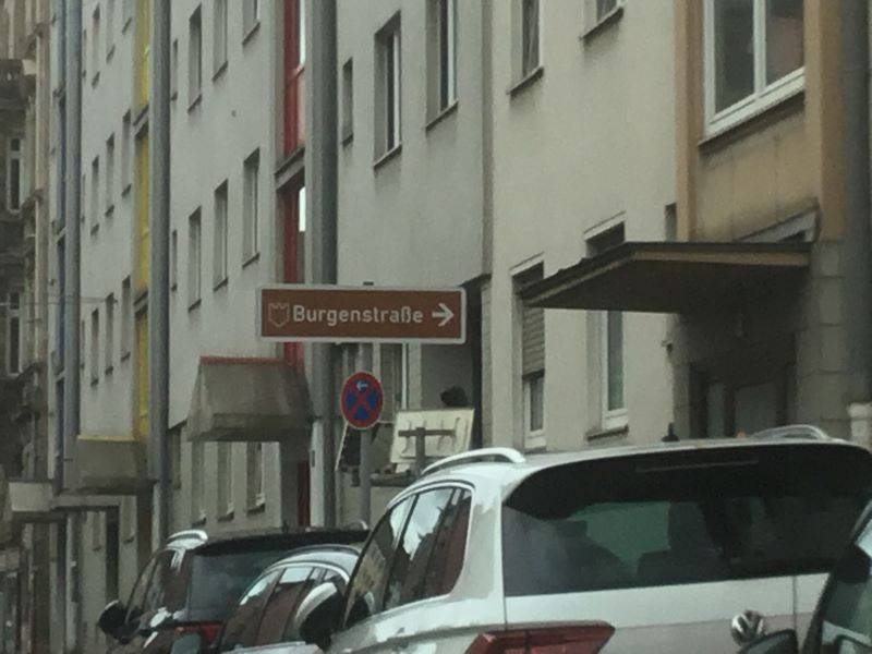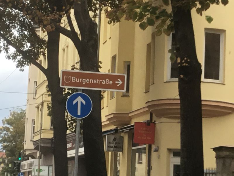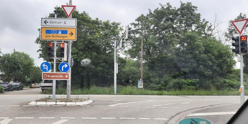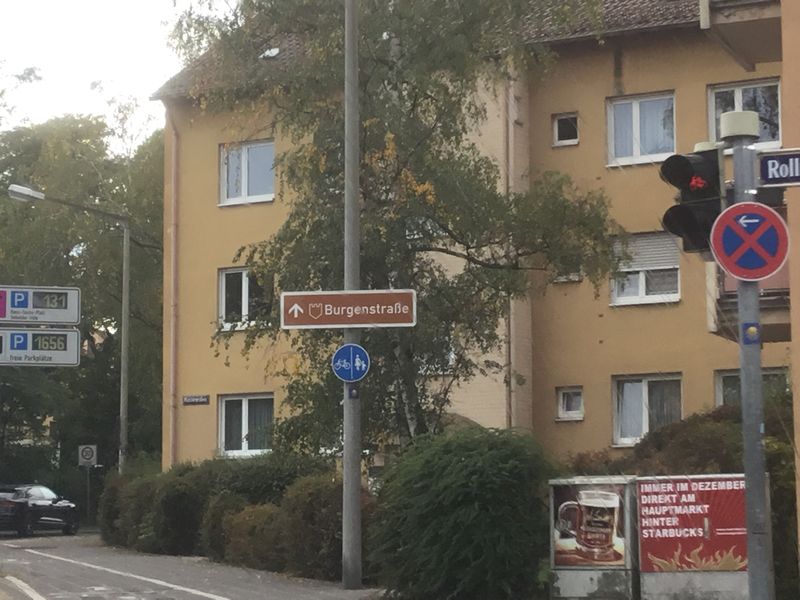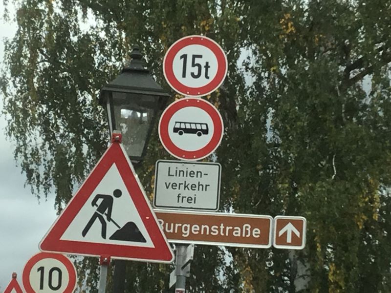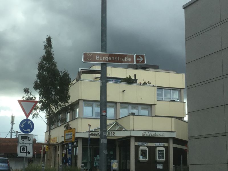 Aufstellung: AUSTAUSCHEN Standort: Bismarckstraße, Bereich vor Barockschloss Mannheim, Startschild Burgenstraße Pfeil: GERADEAUS (kann bleiben) Bereisung: 25.06.2017 Großes Schild, Richtung Nürnberg, mit Linkspfeil Kreuzung der Straße aus Edingen-Neckarhausen mit B 37 nach Heidelberg