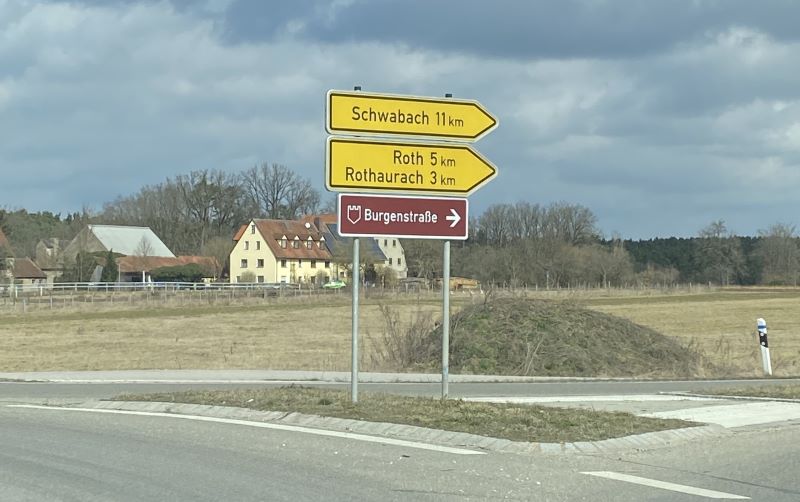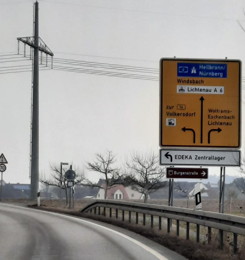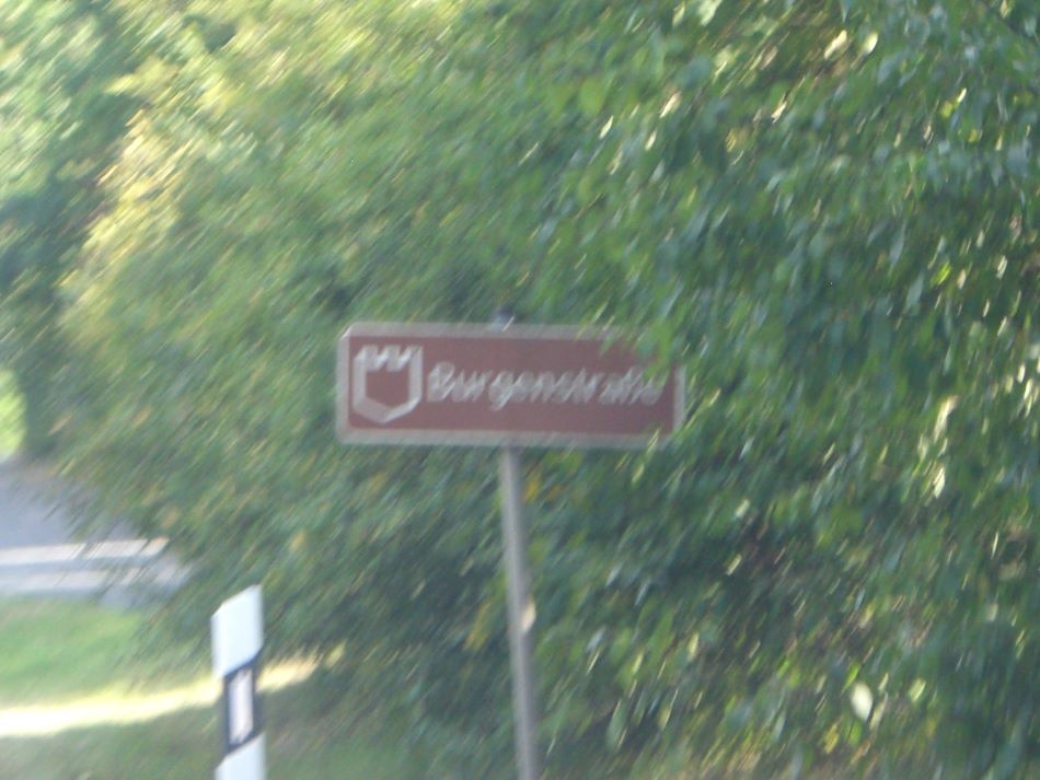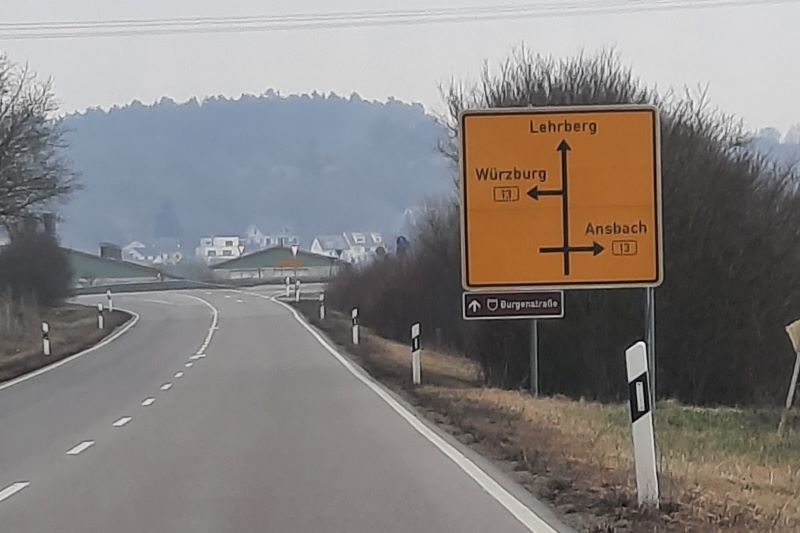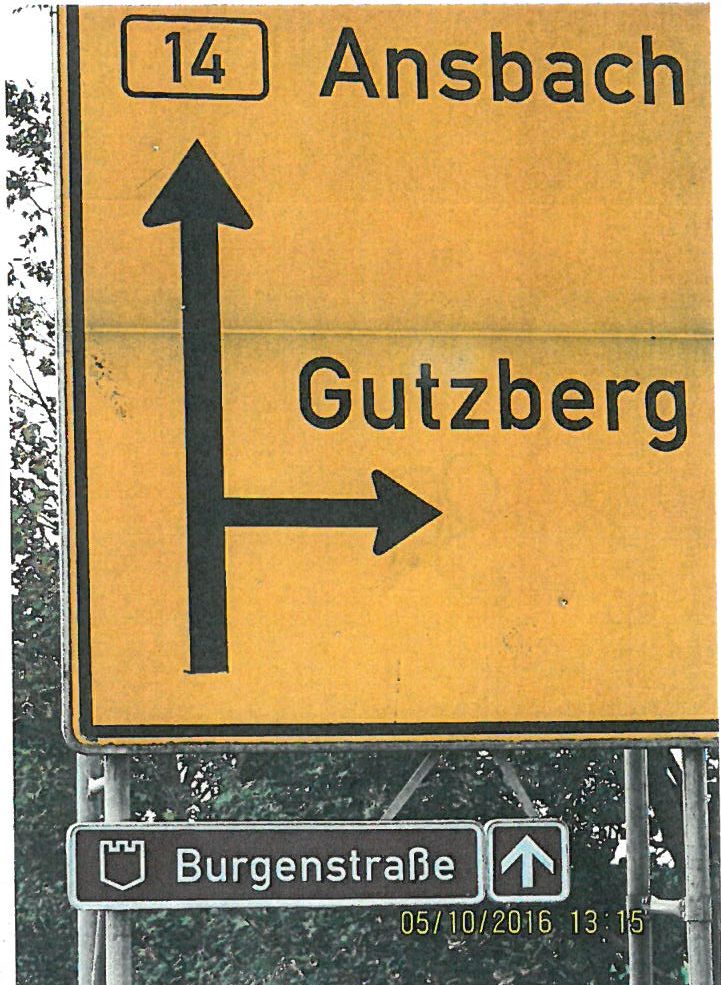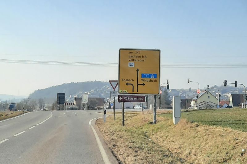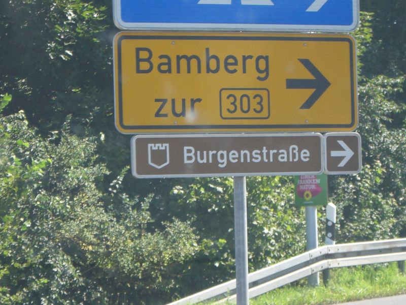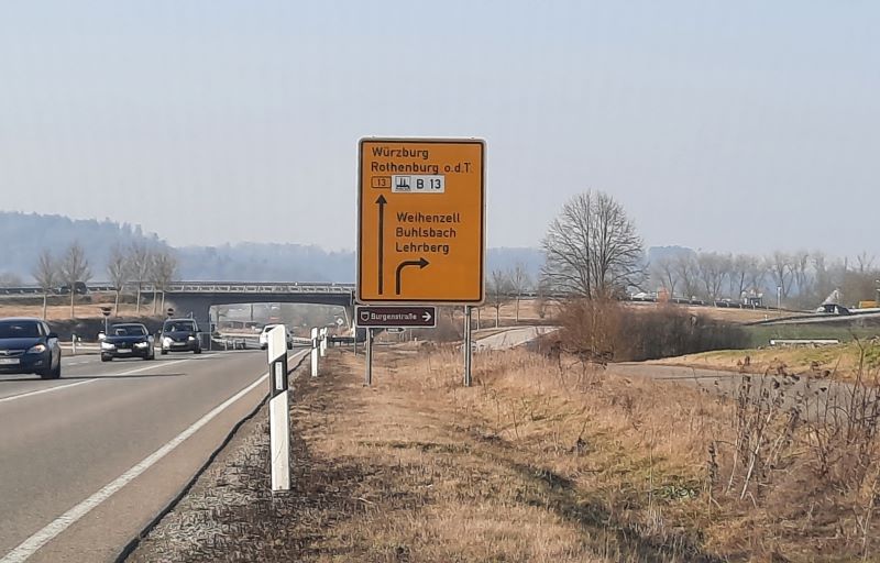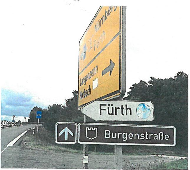 Standort: B 4, vor Ausfahrt Richtung Schweinfurt, unter der rechten Hälfte des Vorwegweisers Richtung Schweinfurt/B 303 (es muss deutlich werden, dass die Burgenstraße der Beschilderung Richtung Schweinfurt folgt)