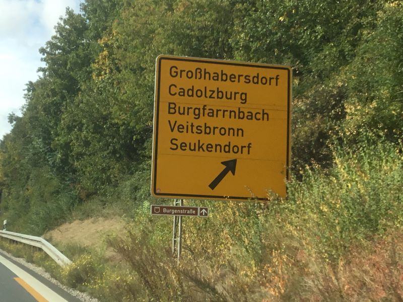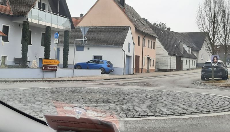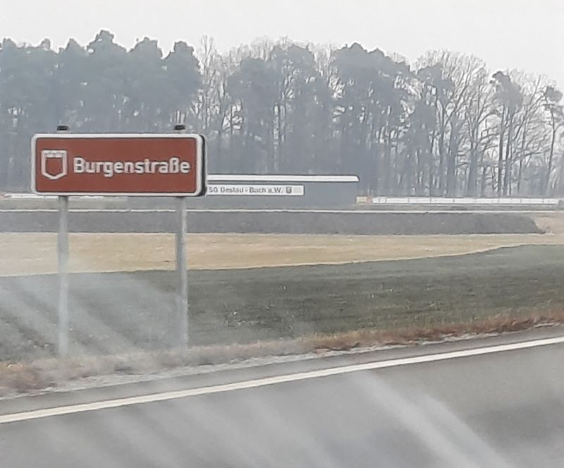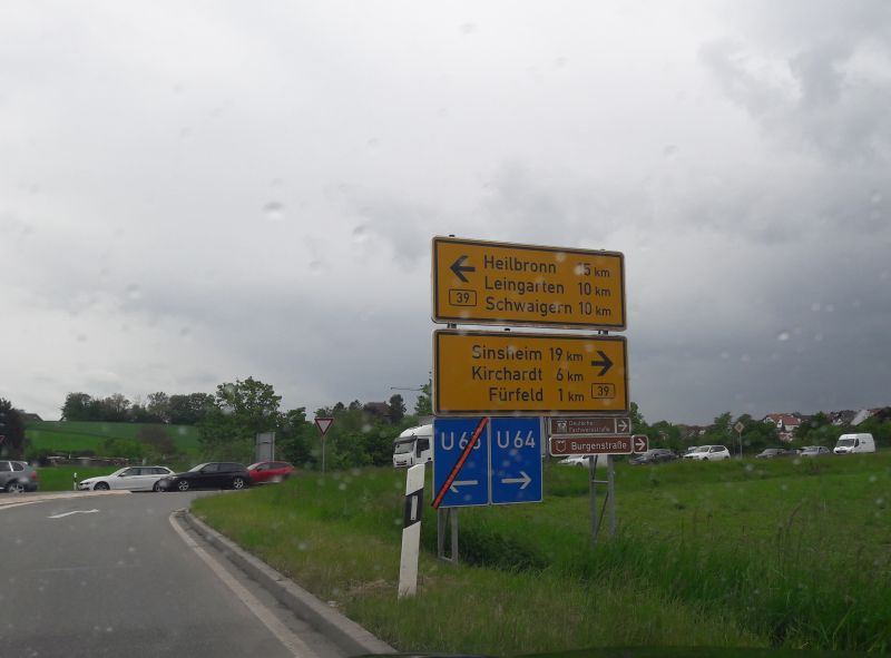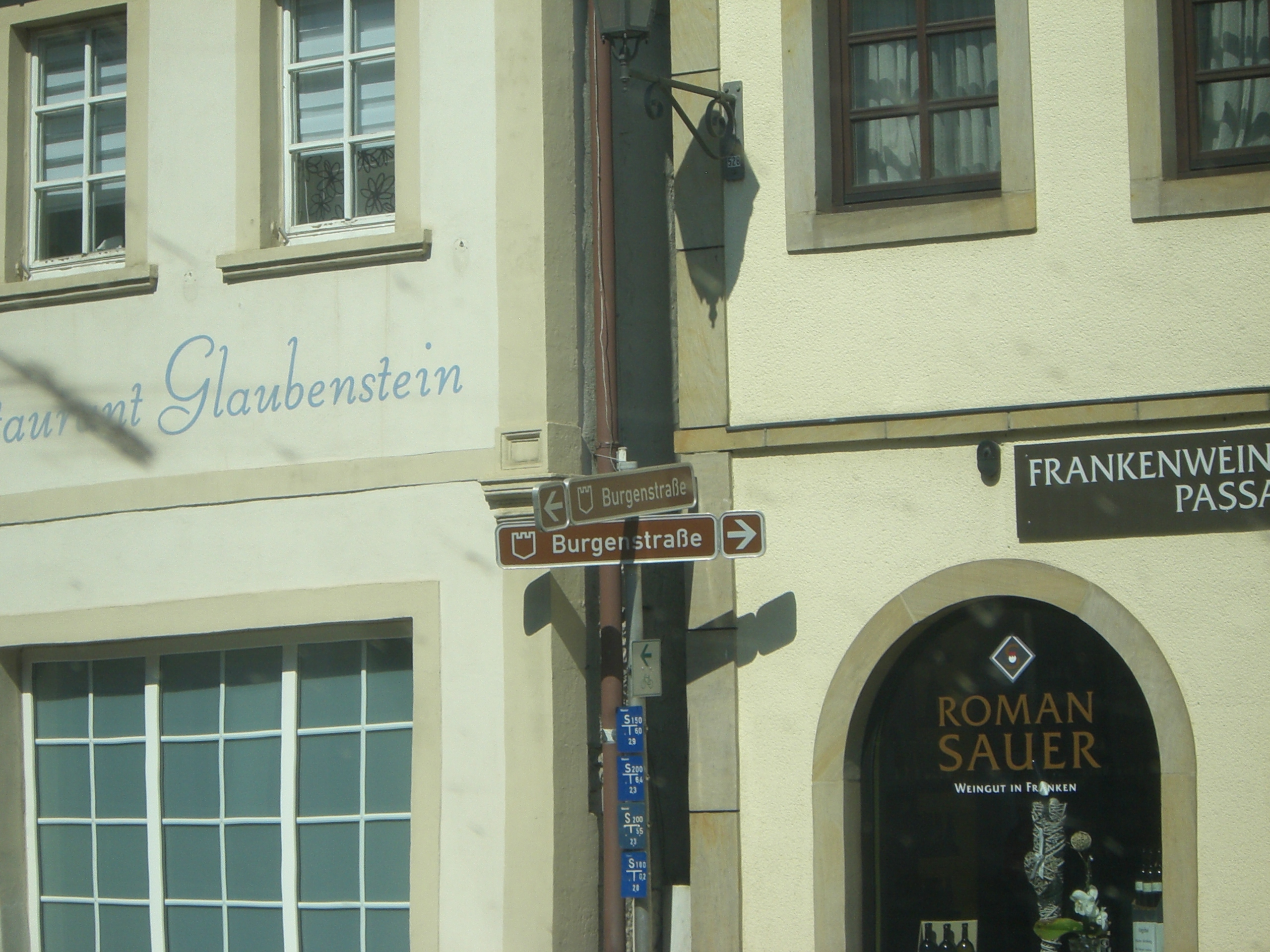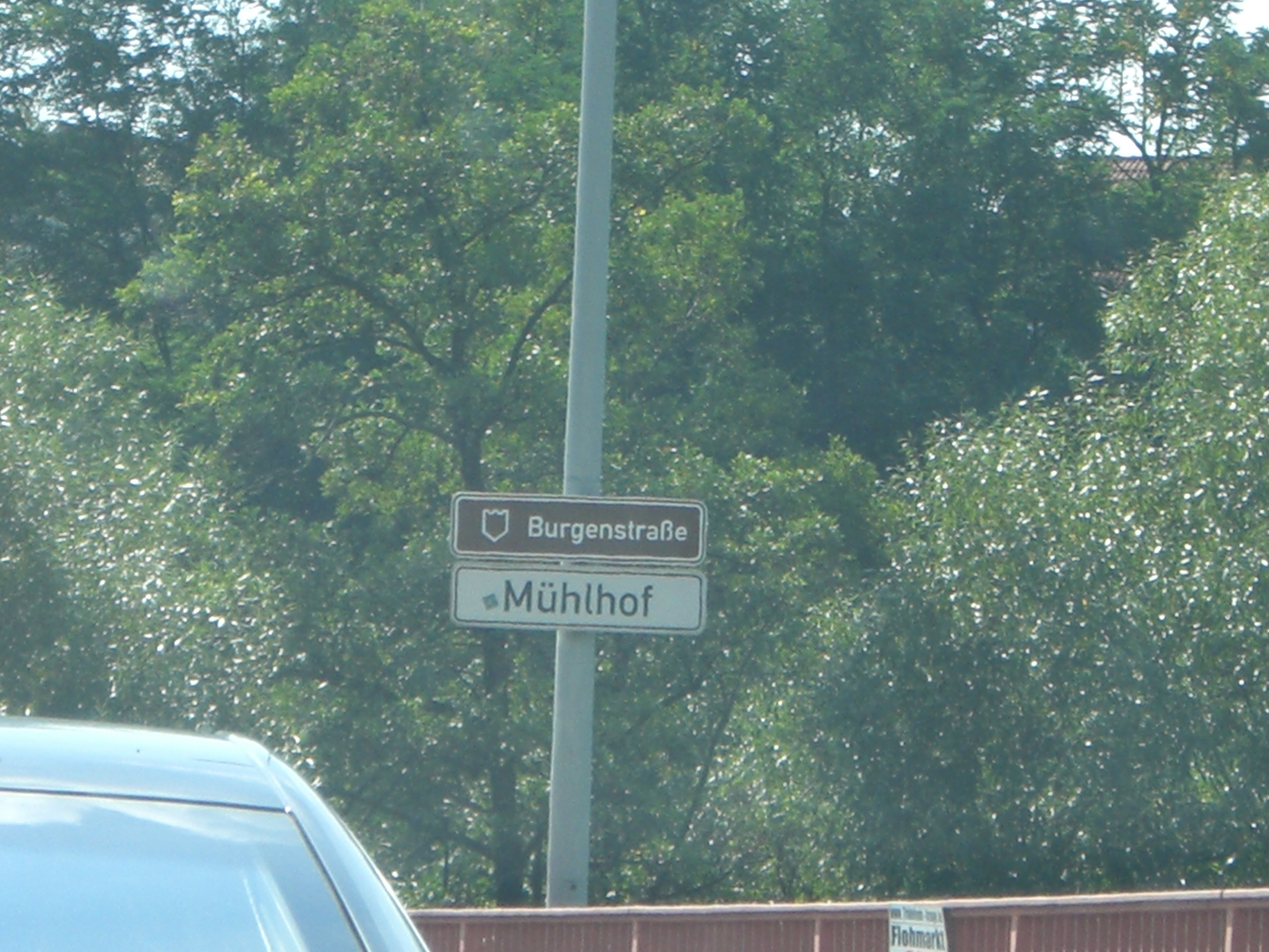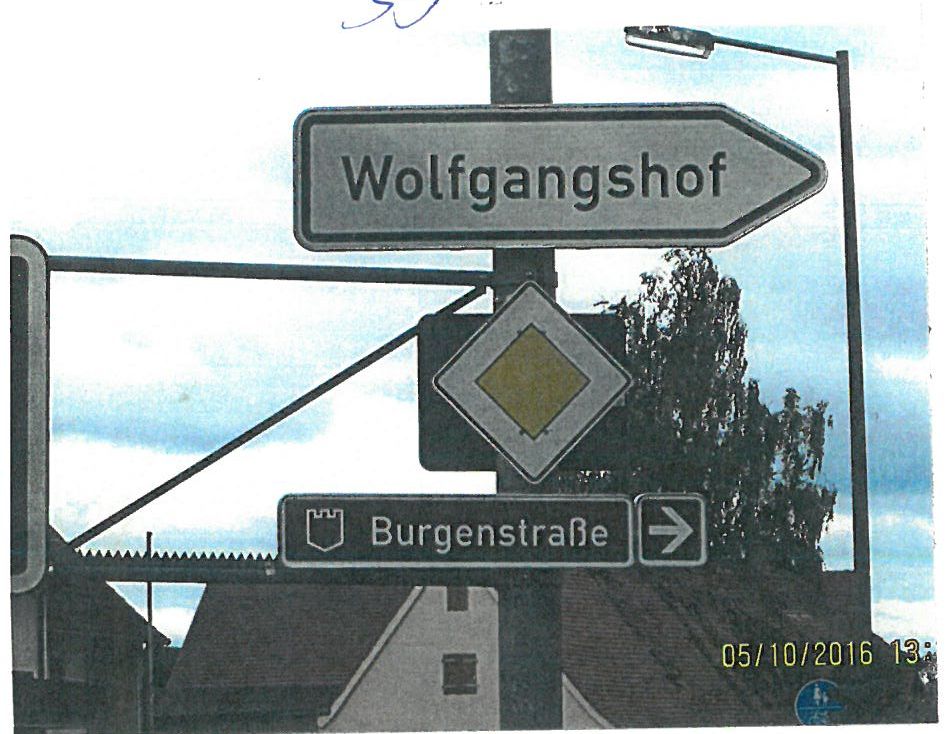 Standort: B 4, vor Ausfahrt Richtung Schweinfurt, unter der rechten Hälfte des Vorwegweisers Richtung Schweinfurt/B 303 (es muss deutlich werden, dass die Burgenstraße der Beschilderung Richtung Schweinfurt folgt)