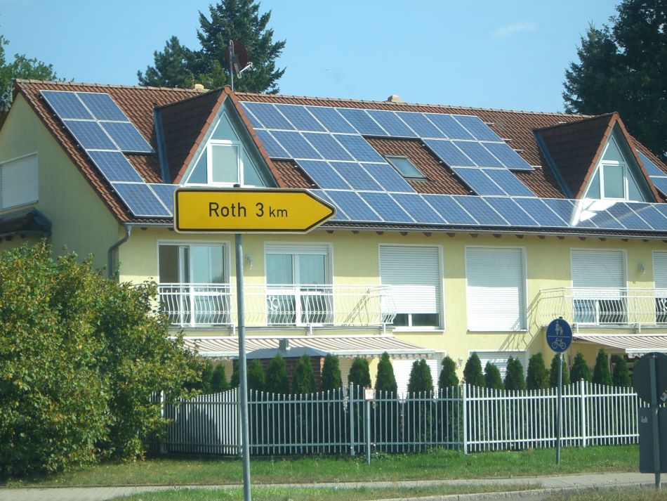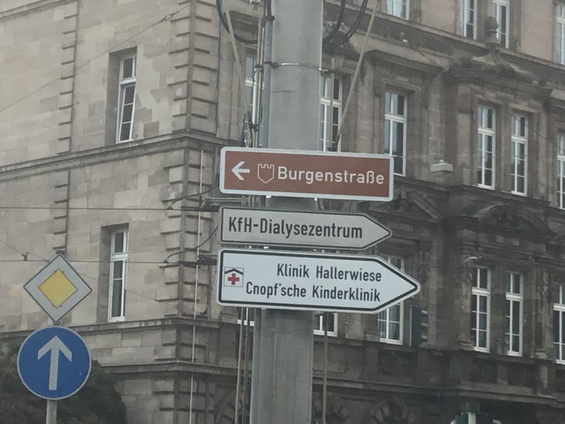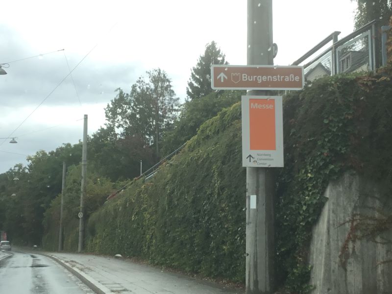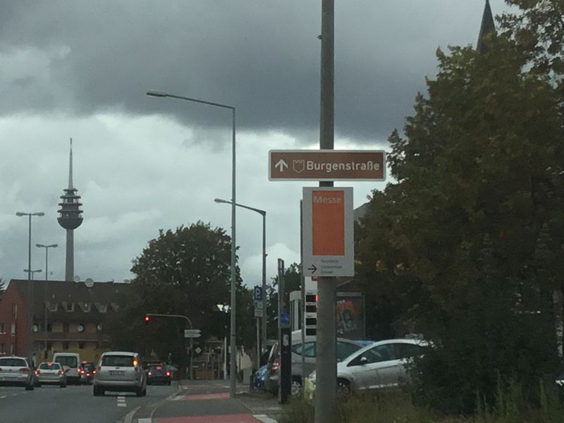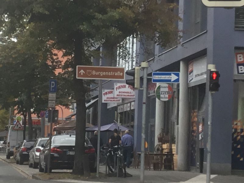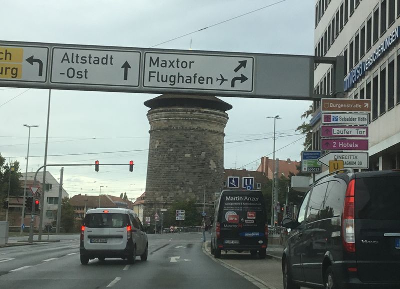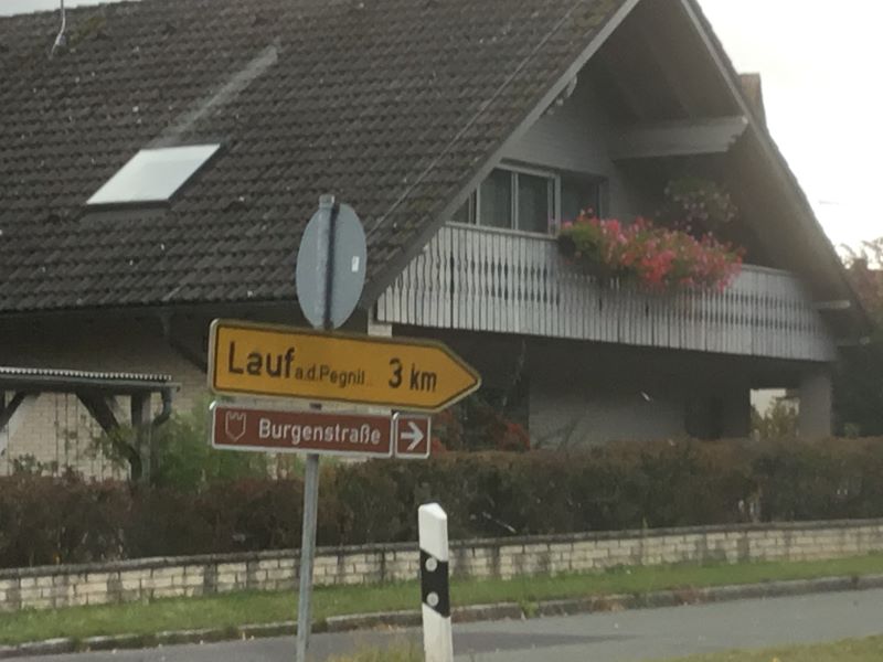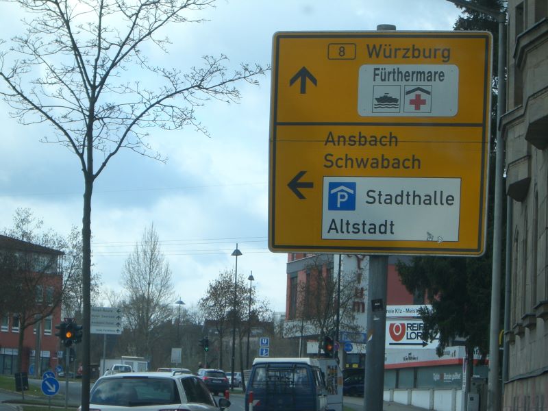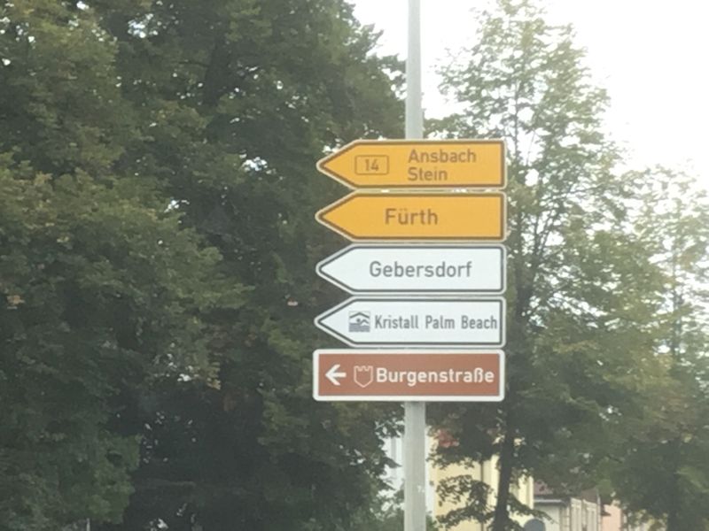 Großes Schild, Richtung Nürnberg, mit Linkspfeil
