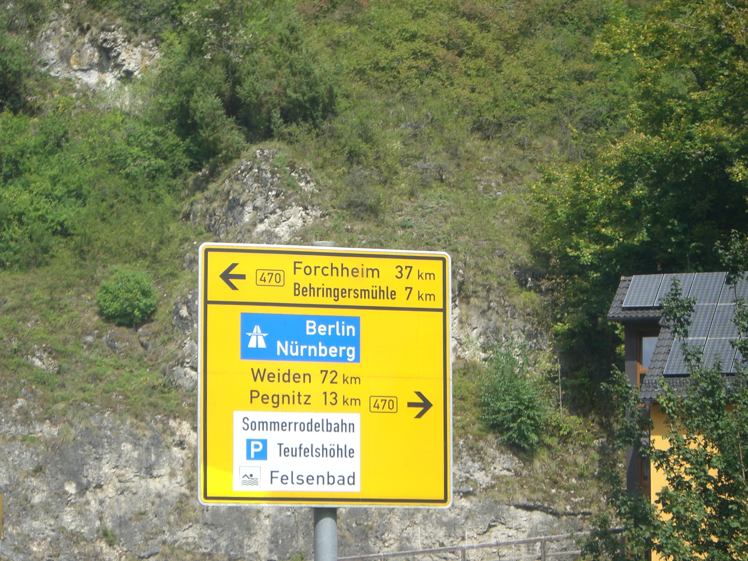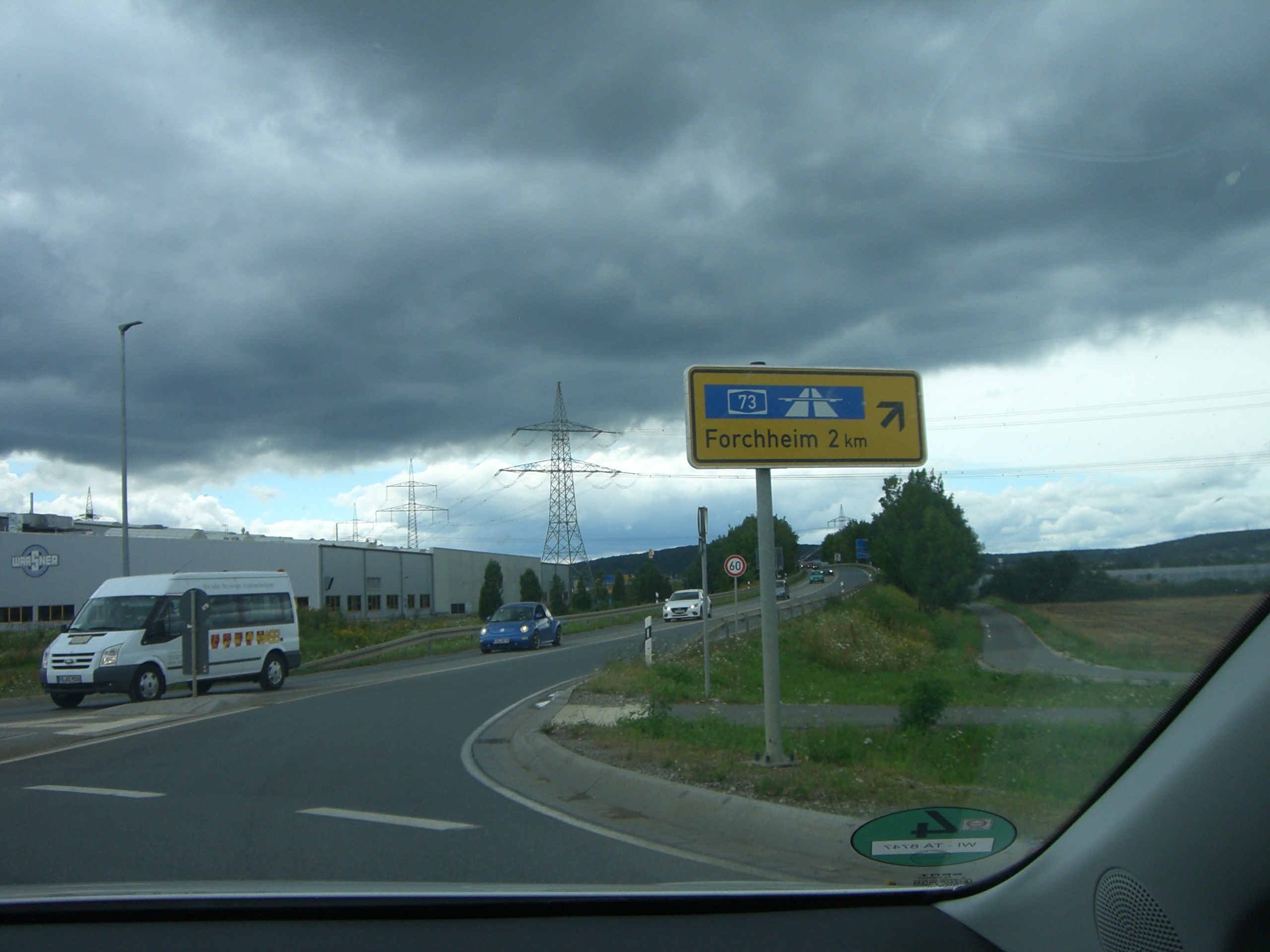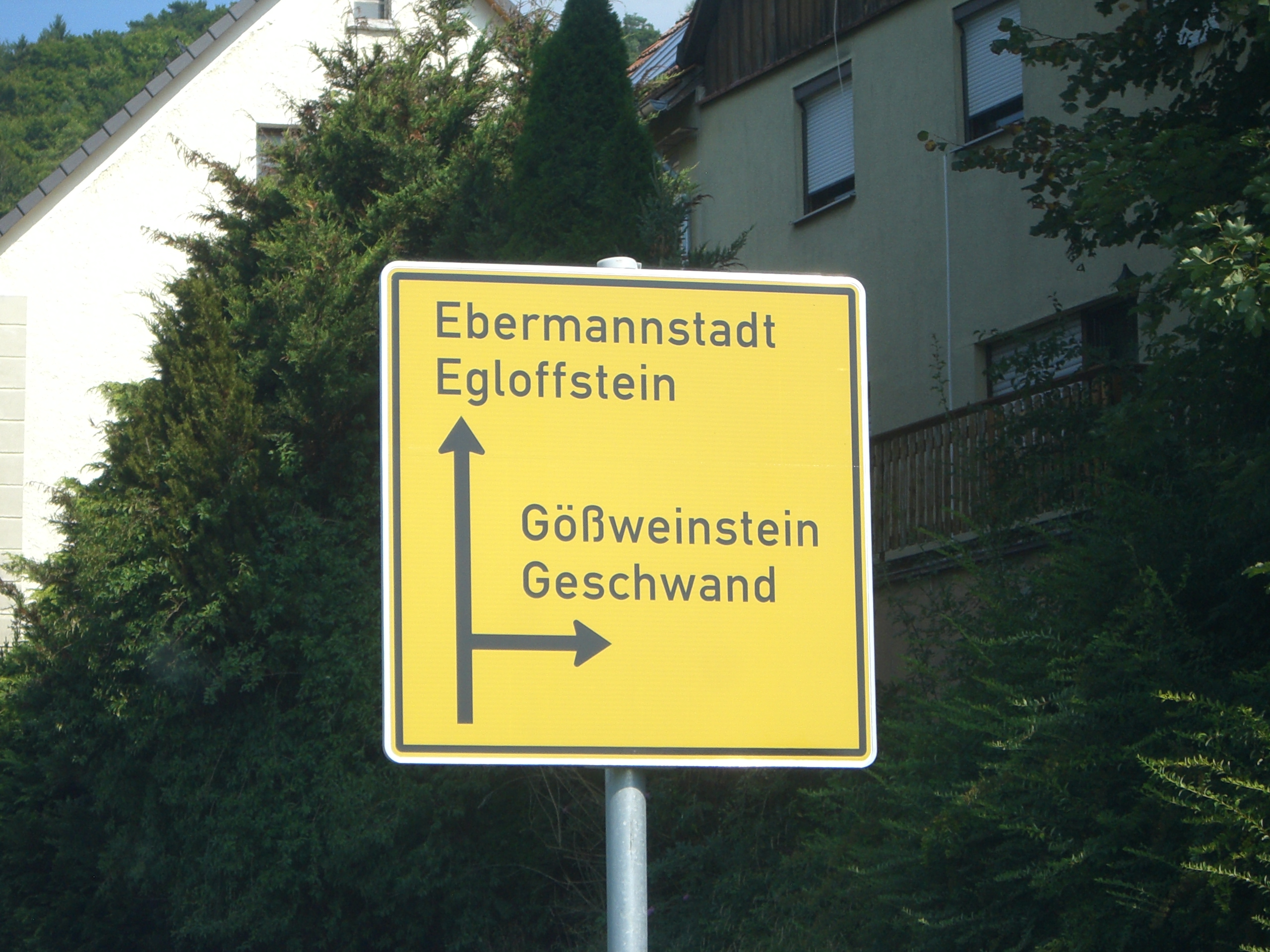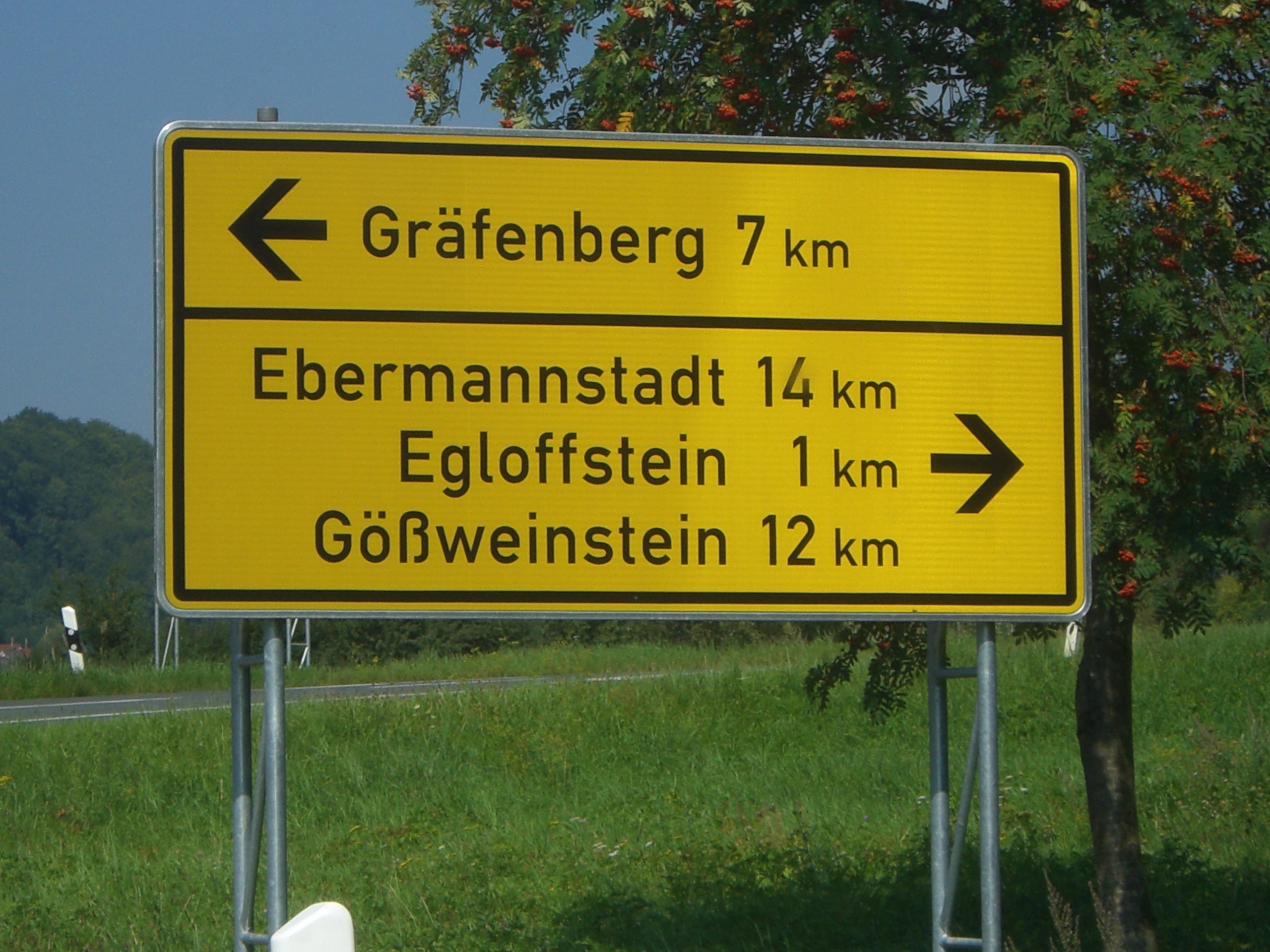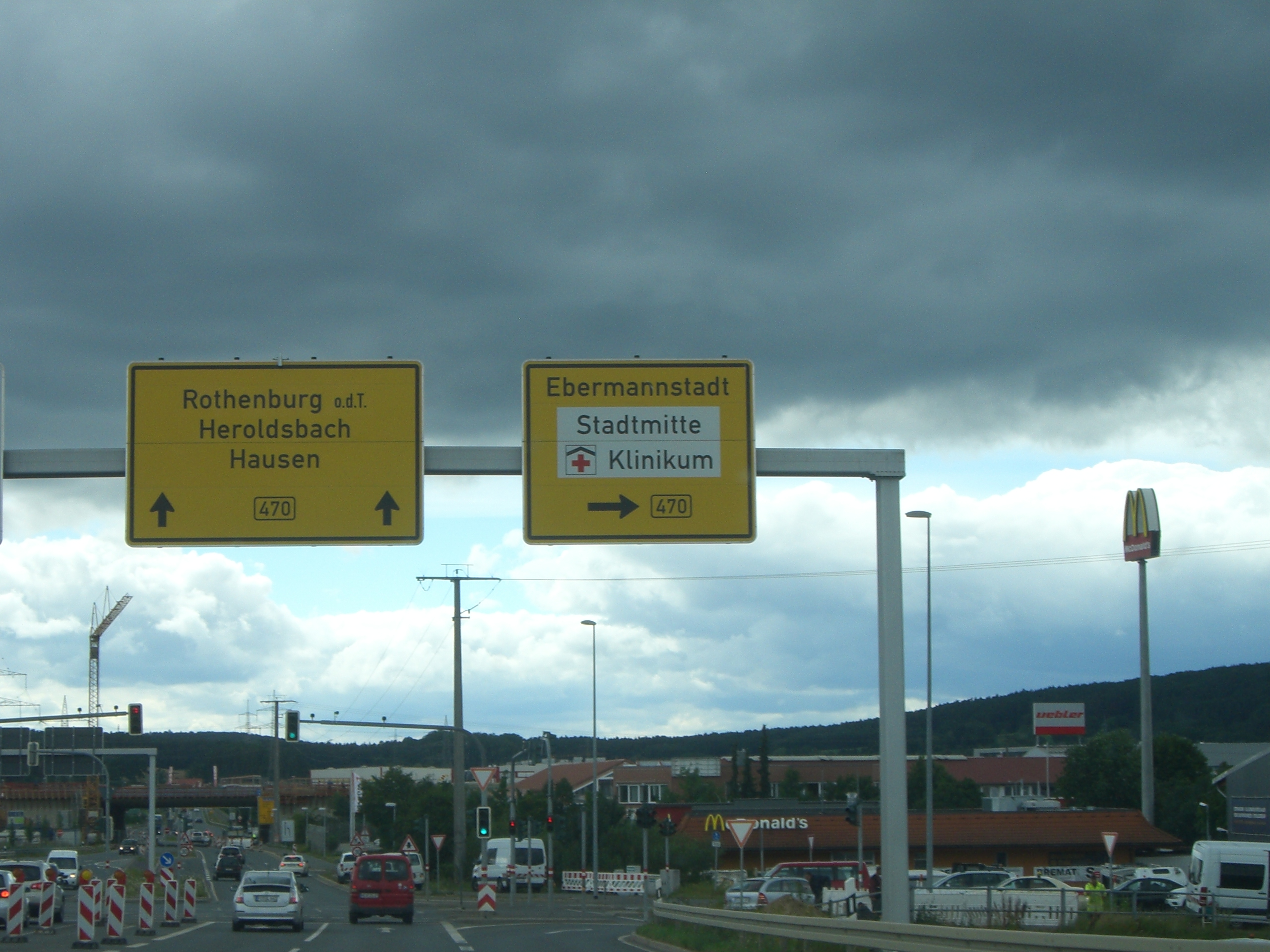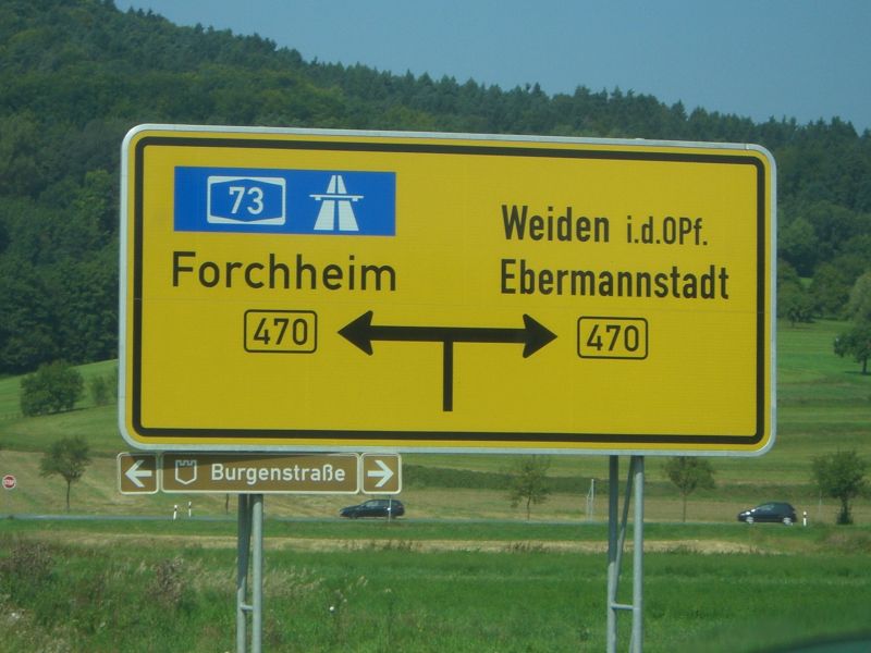 Standort: vor Forchheim auf der B470, vor der Kreuzung mit St 2760 nach Pretzfeld, unter Wegweiser Richtung Forchheim geradeaus und Egloffstein links