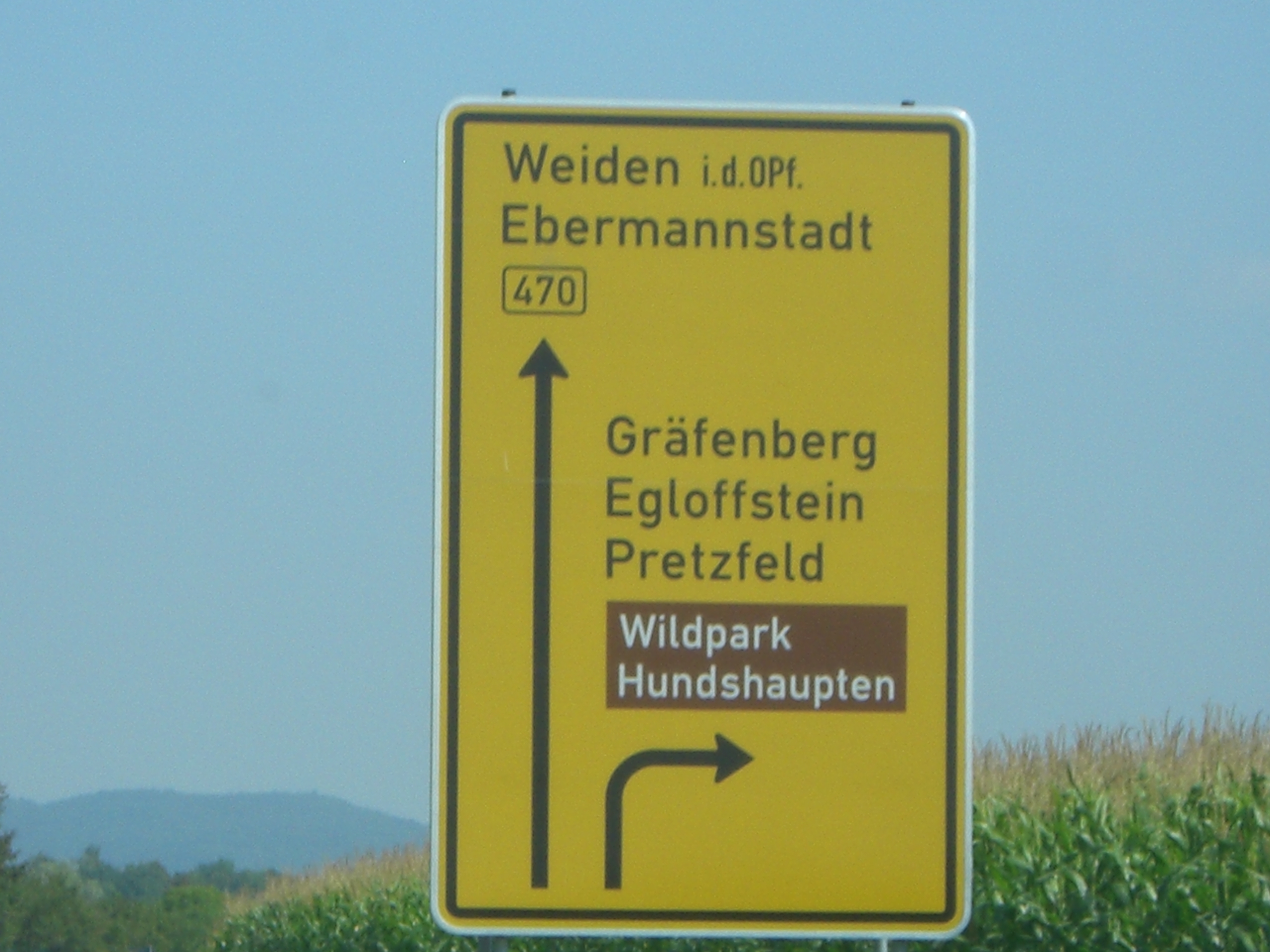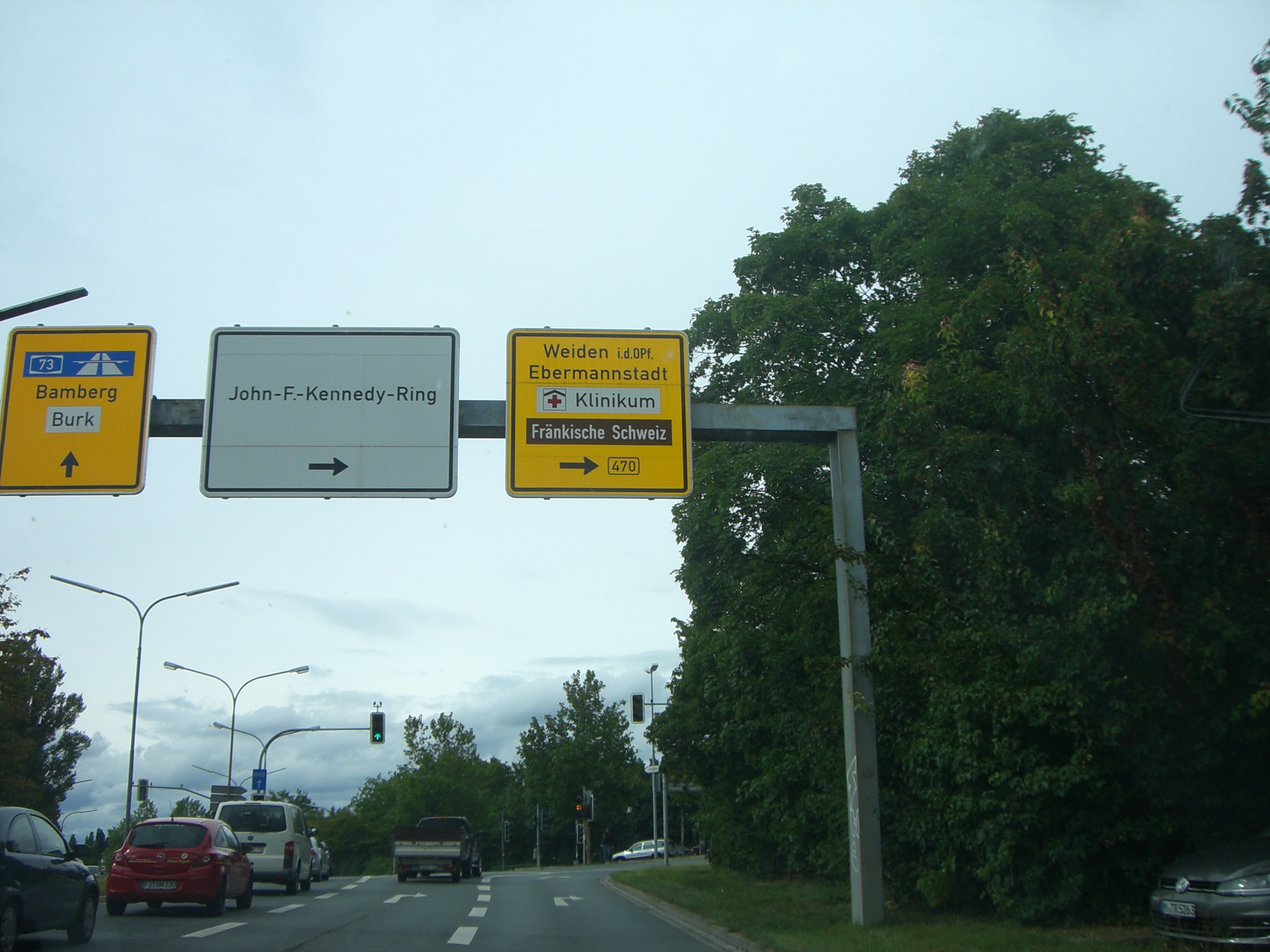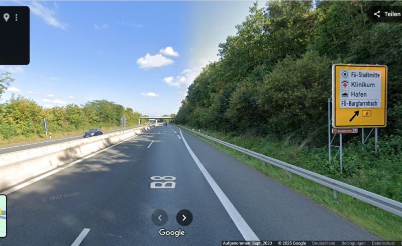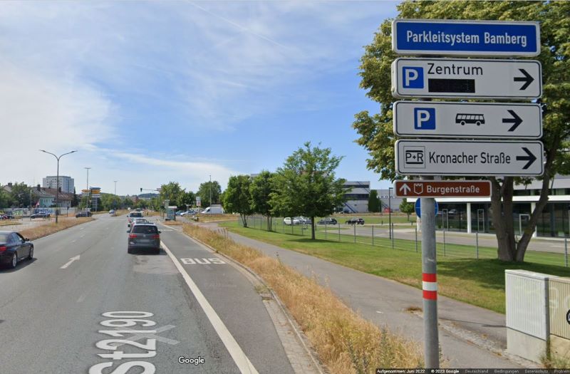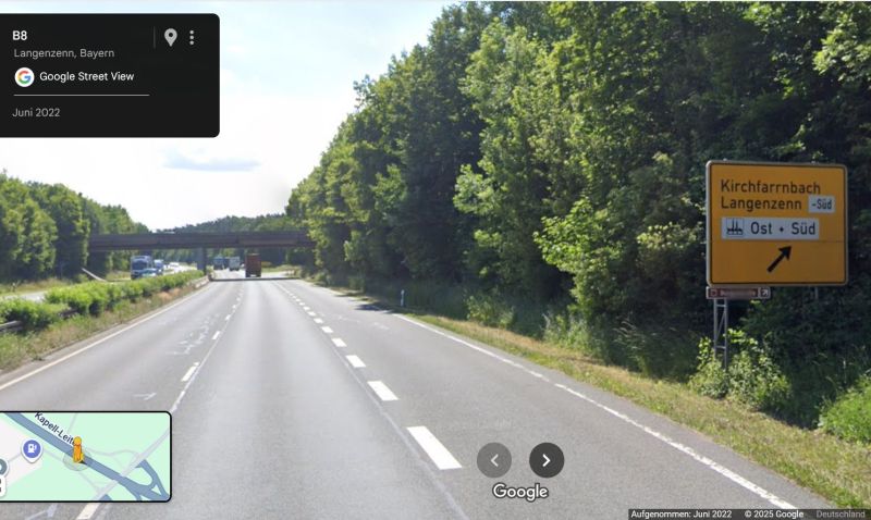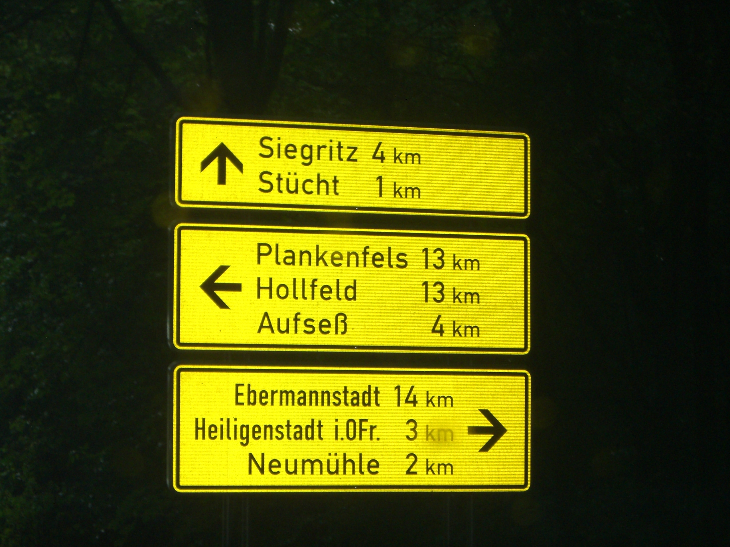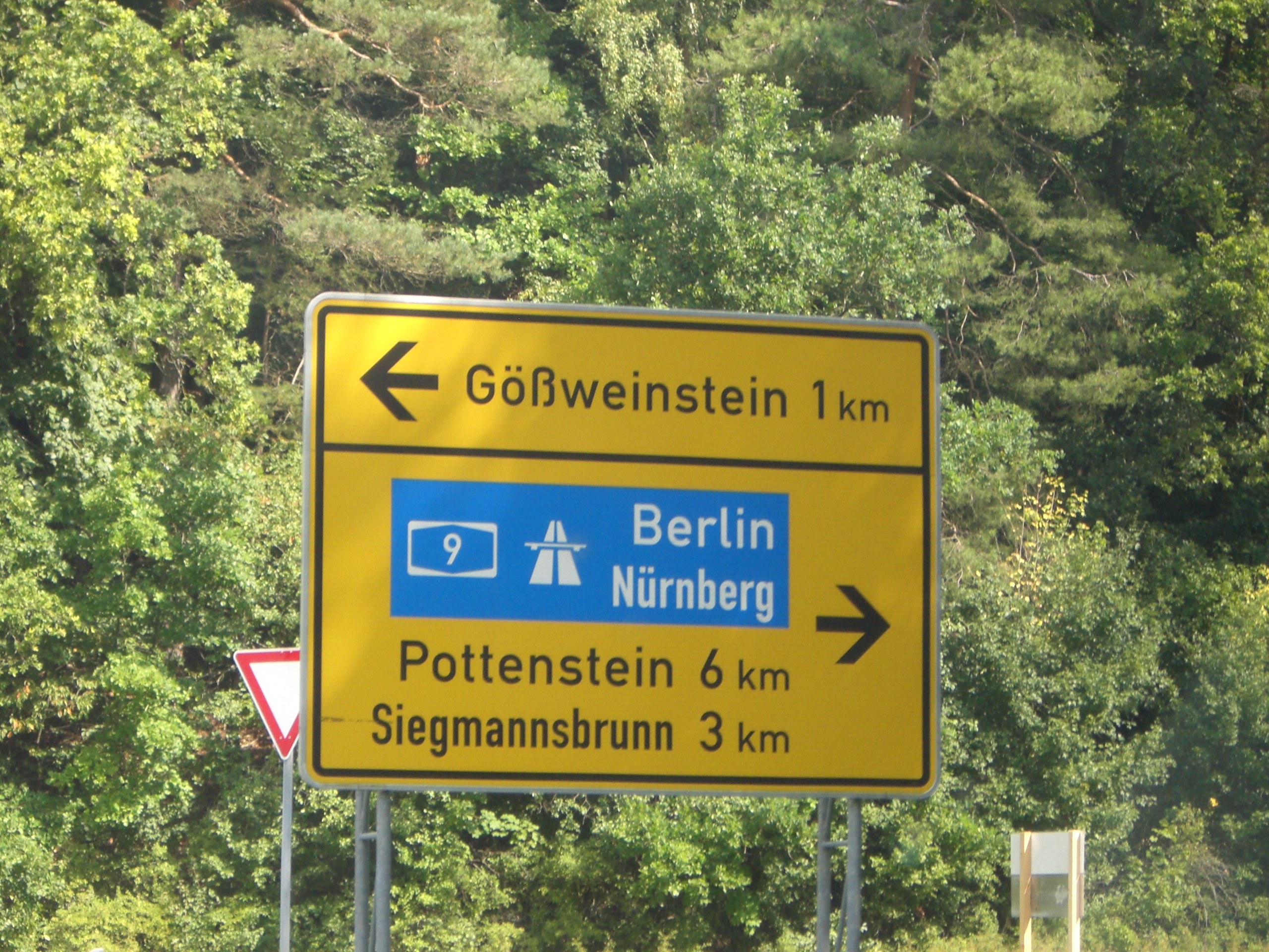 Standort: vor Forchheim auf der B470, vor der Kreuzung mit St 2760 nach Pretzfeld, unter Wegweiser Richtung Forchheim geradeaus und Egloffstein links