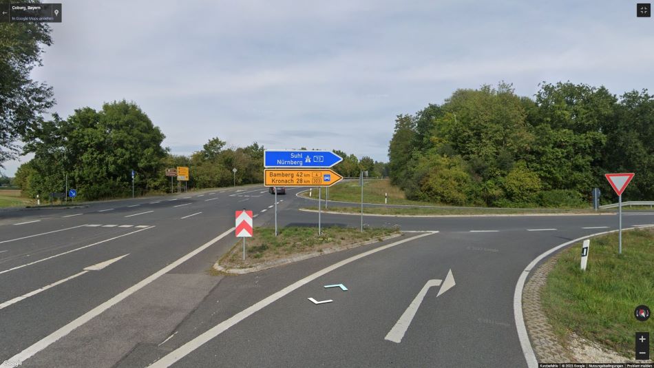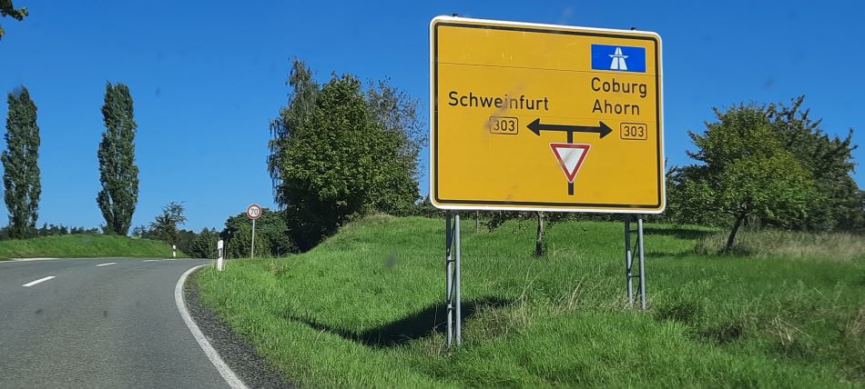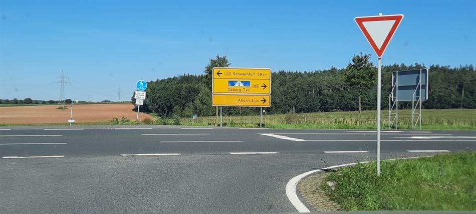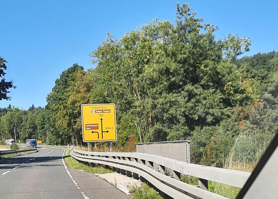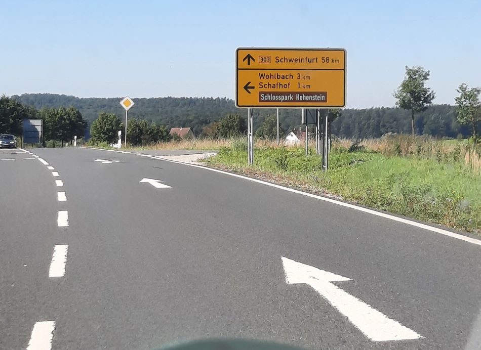 Standort: B 303, kurz vor der Abzweigung rechts nach Ahorn, unter Vorwegweiser Richtung Schweinfurt