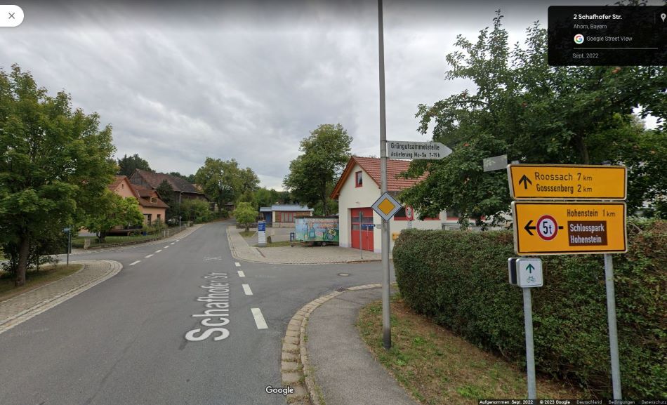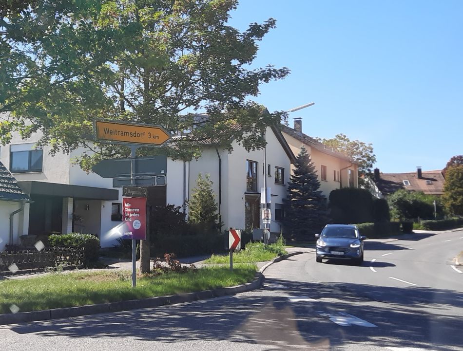 Standort: Weitramsdorf, Ummerstadter Straße vor Kreuzung mit Altenhofer Straße, unter Schild Richtung Coburg/Tambach