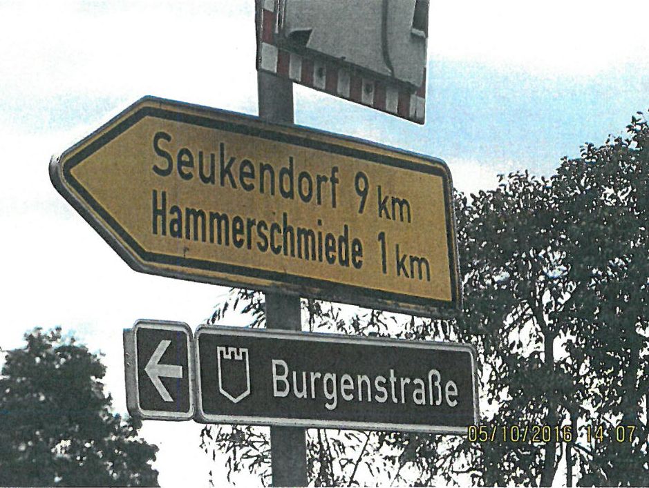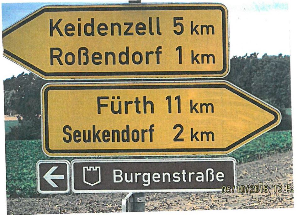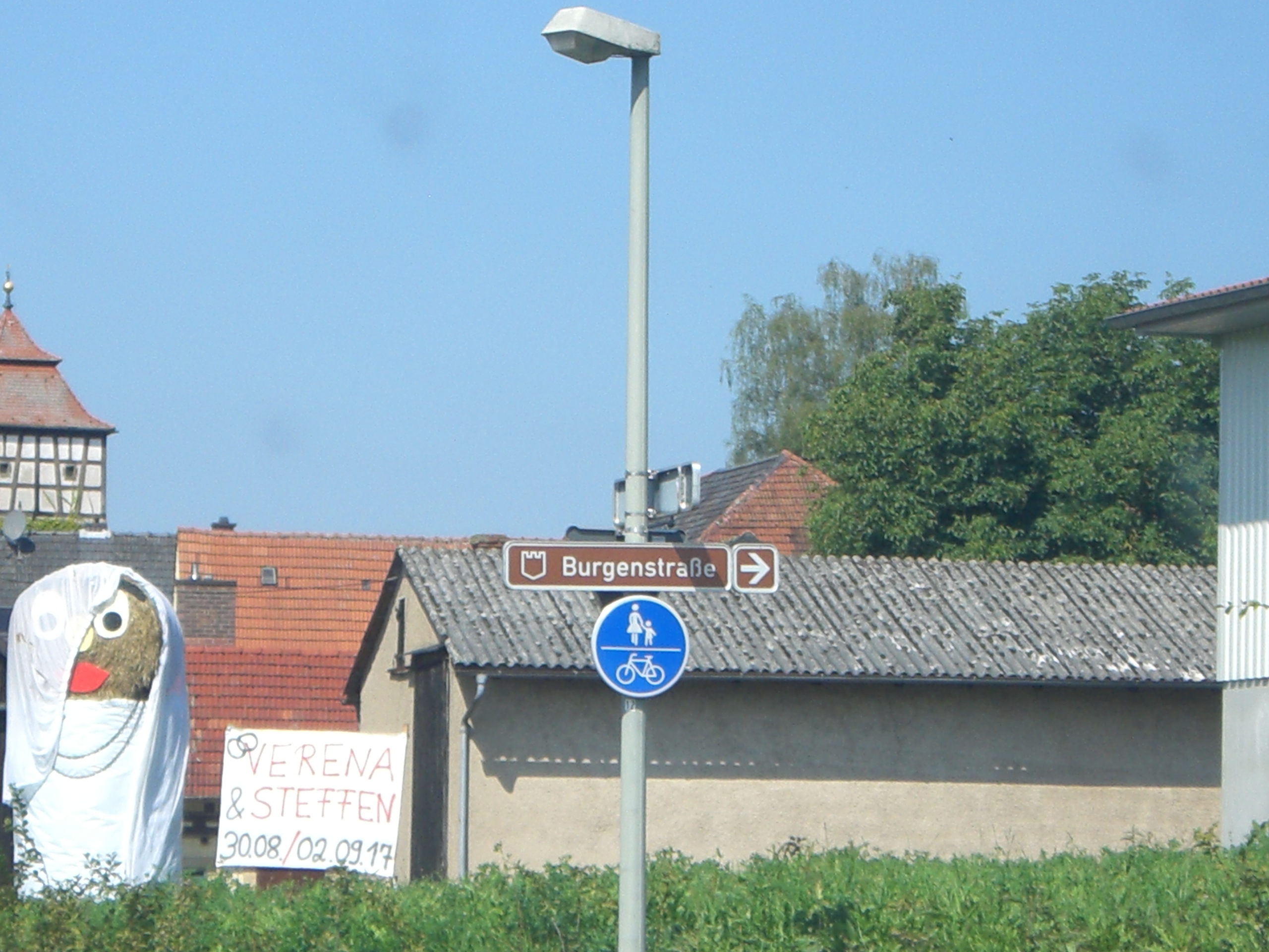 Standort: in Burggrub St 2188, vor Brücke, an Wegweiser links Richtung Bamberg weisend