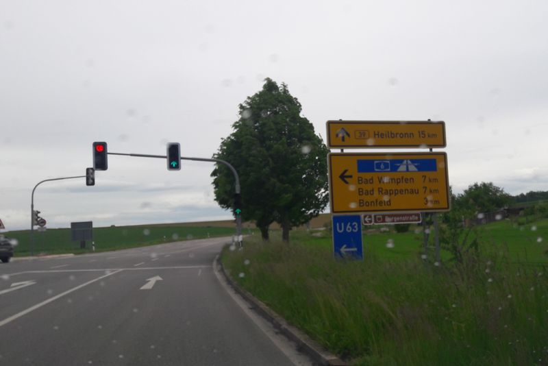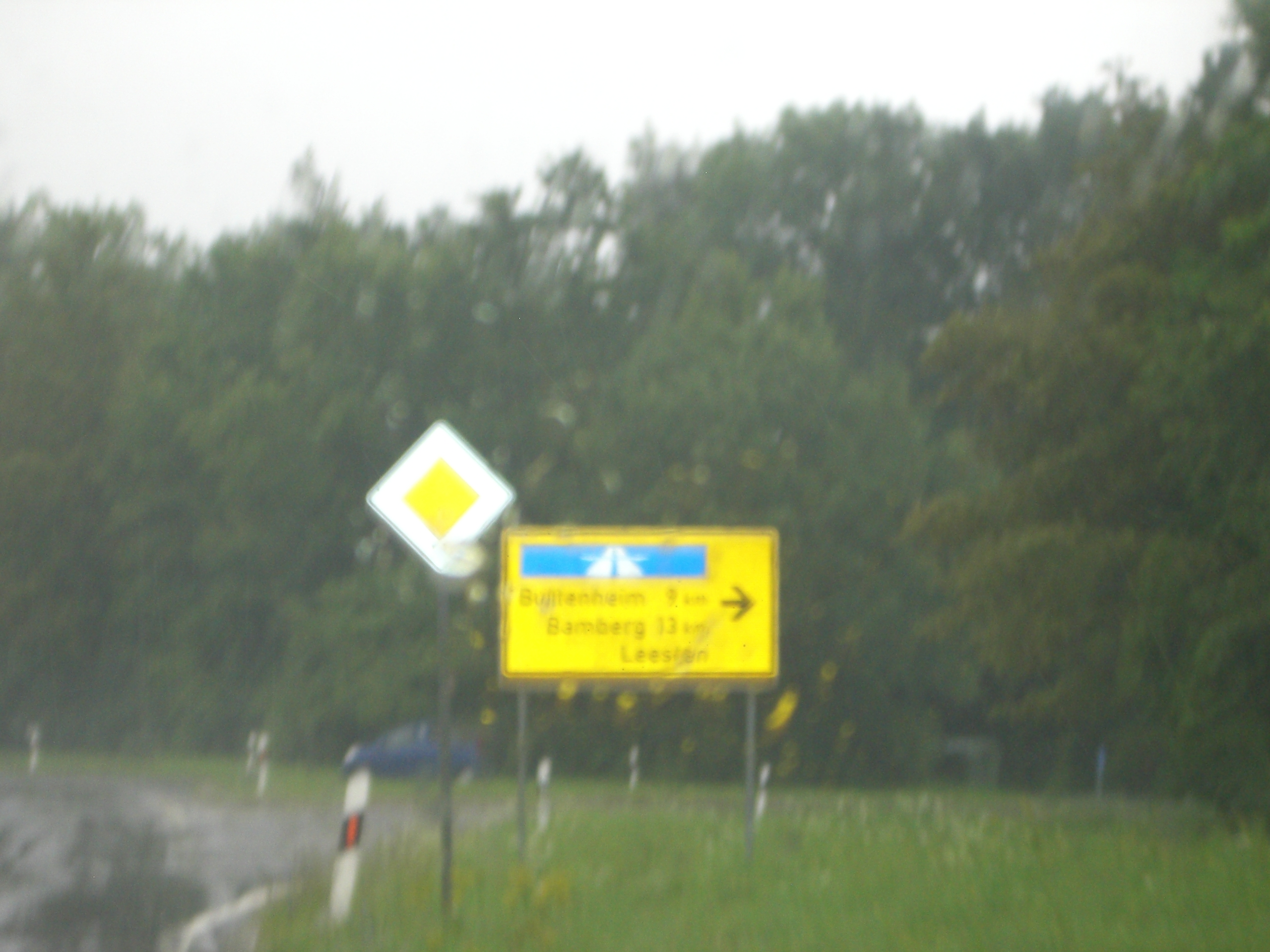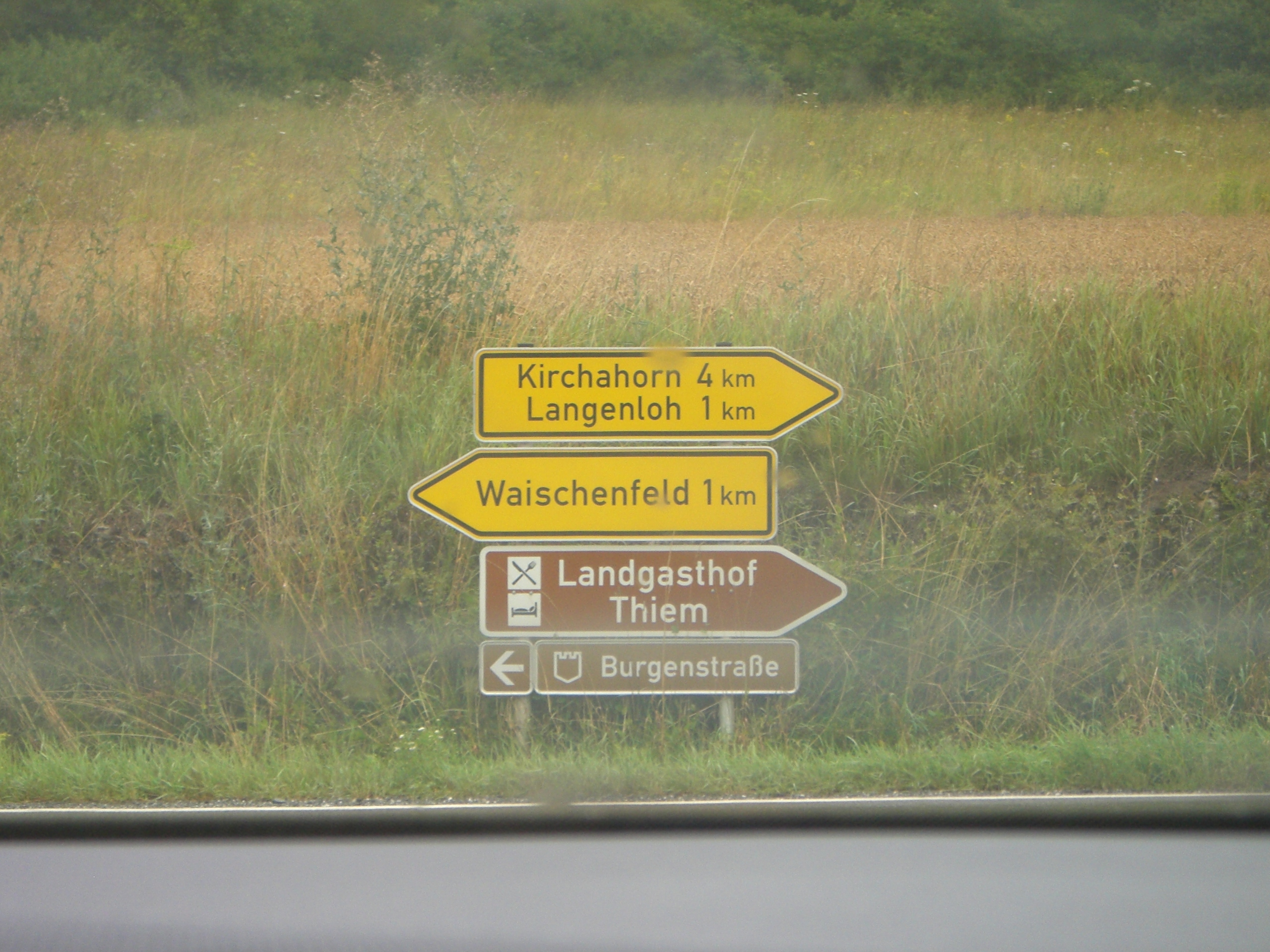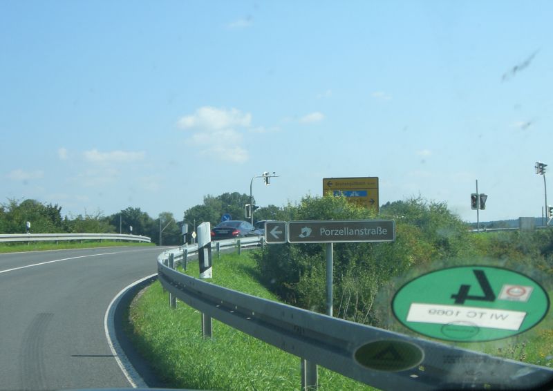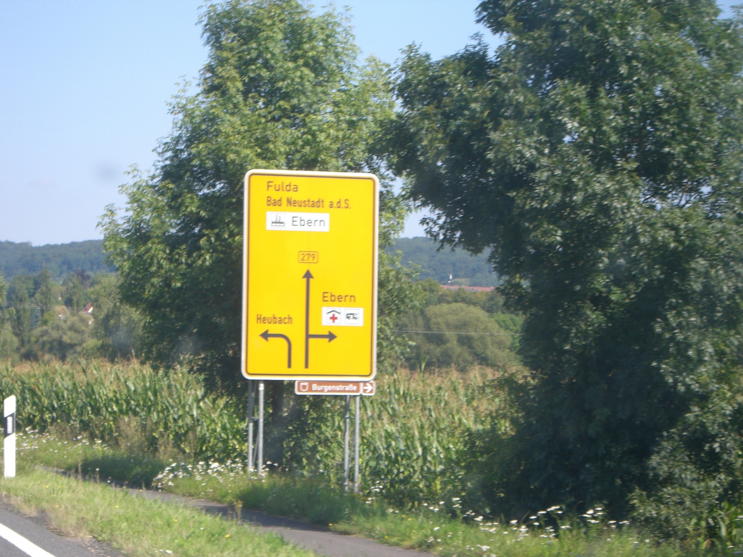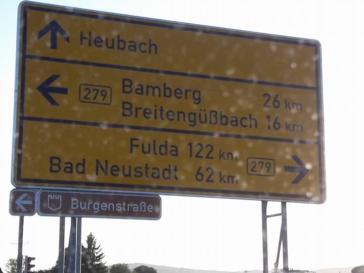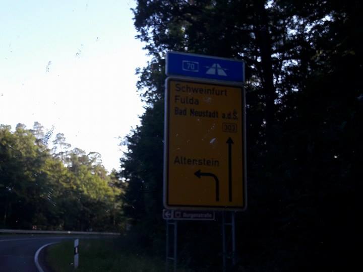 Standort: Abfahrt von B 4 auf B 303, unter/über dem rechtsweisenden Wegweiser "Schweinfurt 61 km"