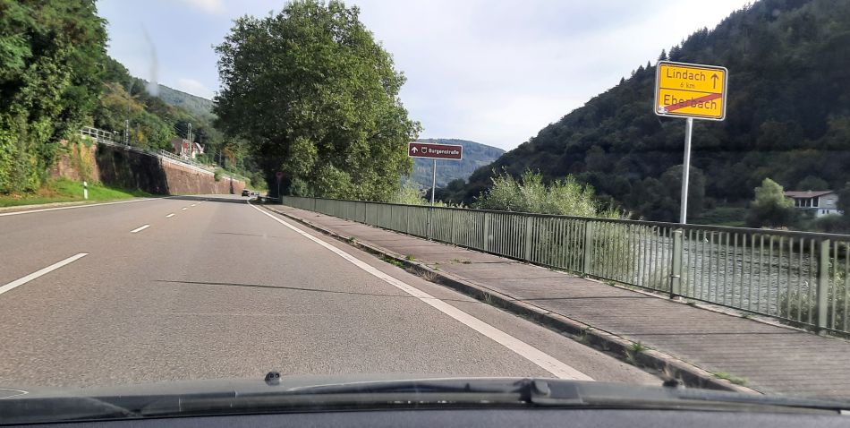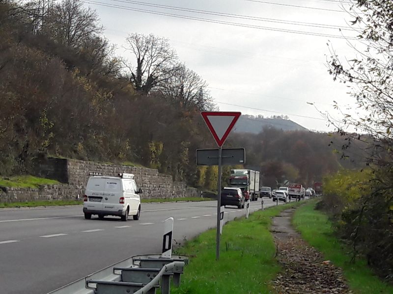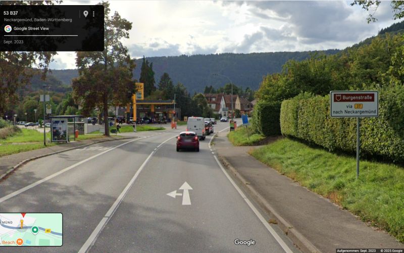 Standort: B 37, an der Parkplatzeinfahrt bei Neckargerach unter Schild "Parkplatz"