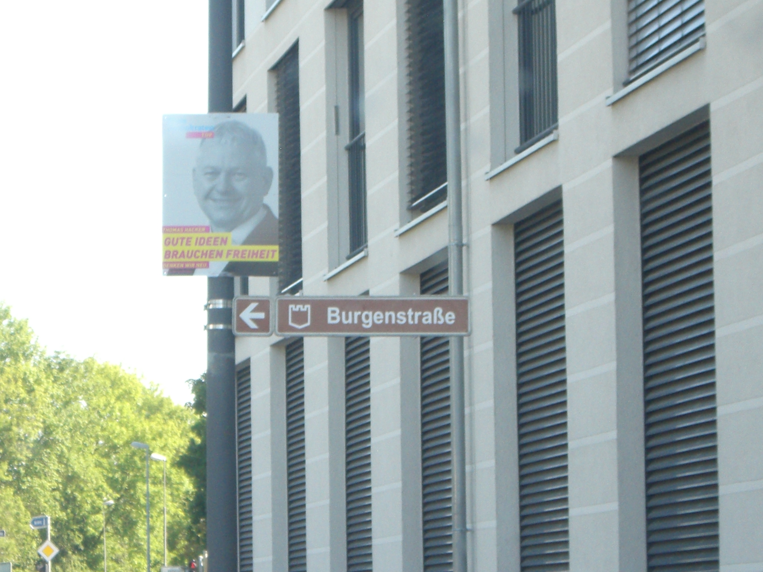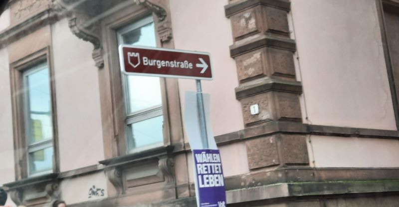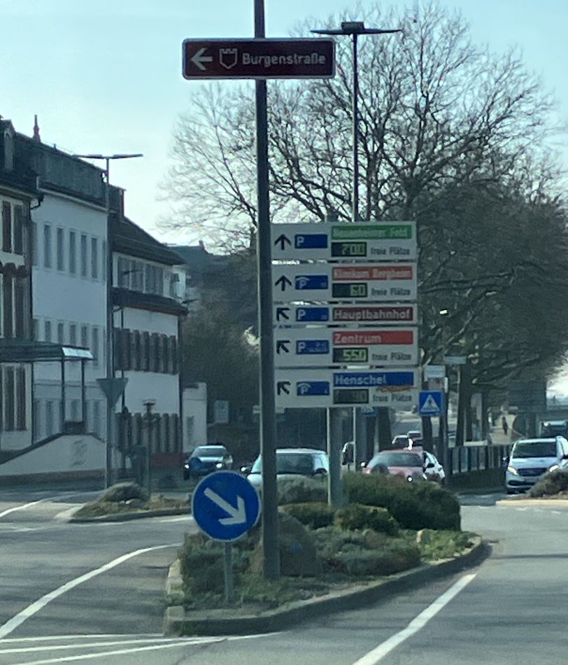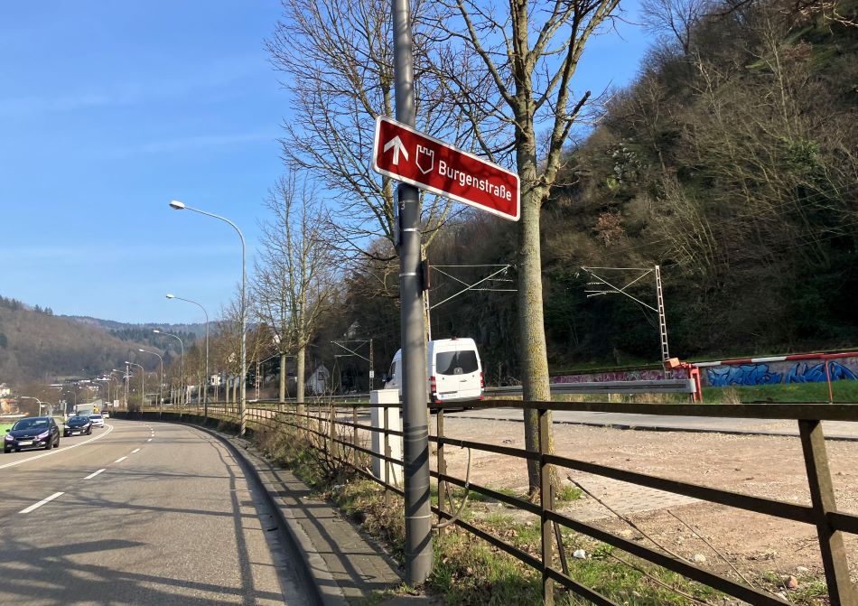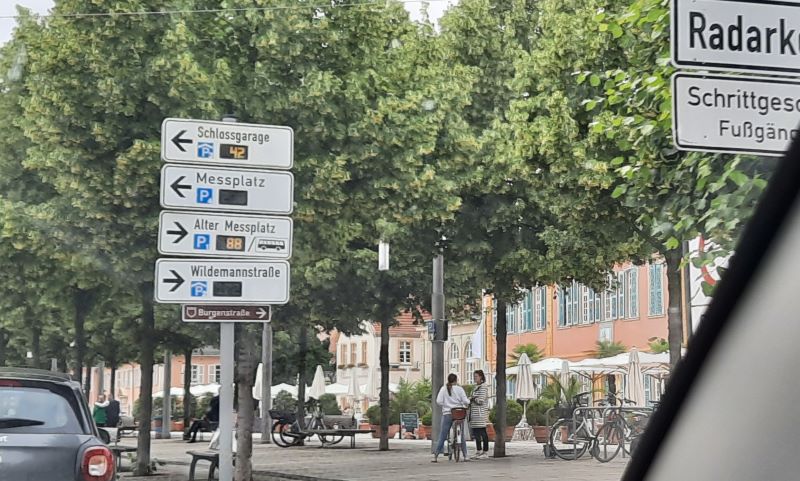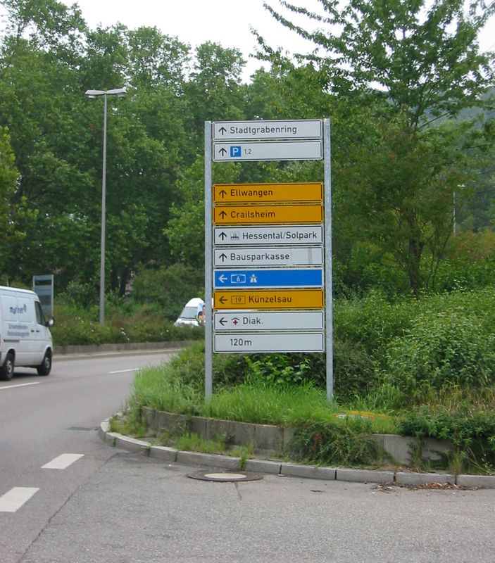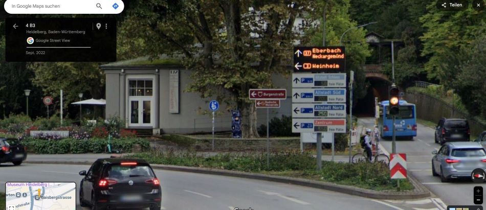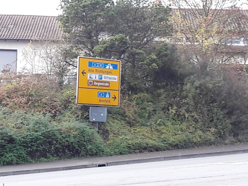 Standort: Ringstraße nach Einmündung Hildastraße, am Mast des Wegweisers Richtung Eberbach/ Neckargemünd/Schloss/Zentrum