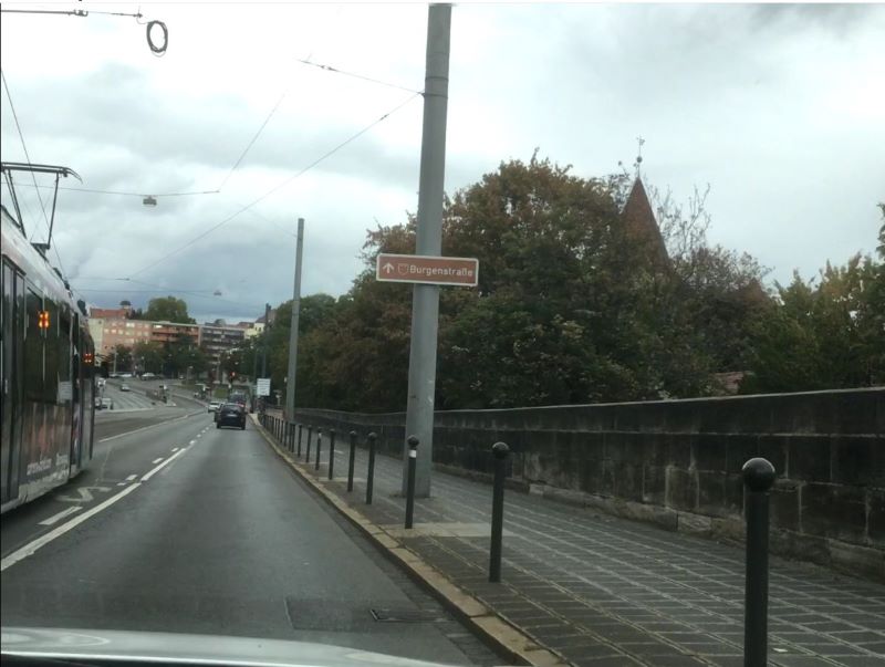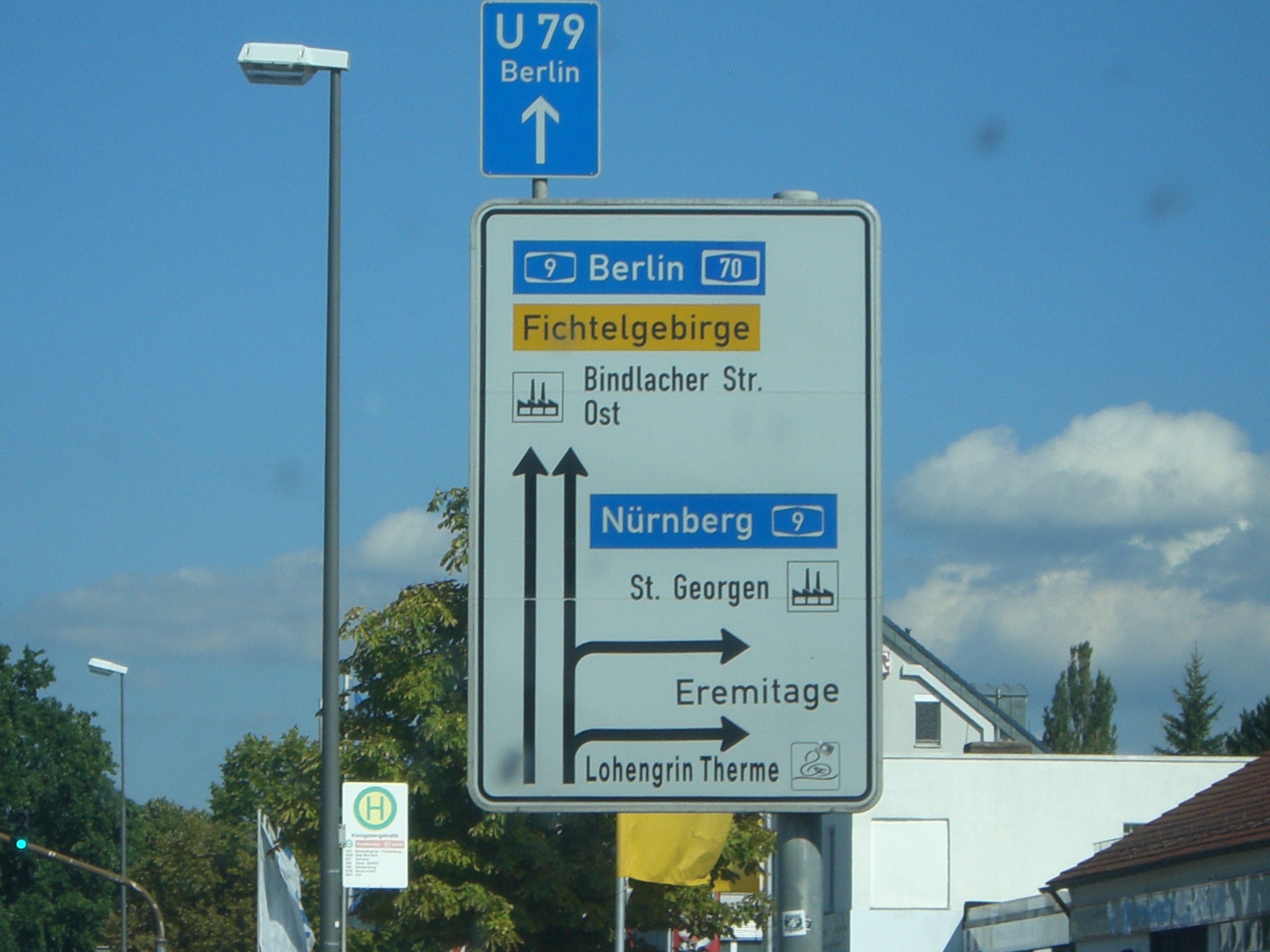 Standort: vor der Brücke auf Bayreuther Straße in Adenauerallee weisend