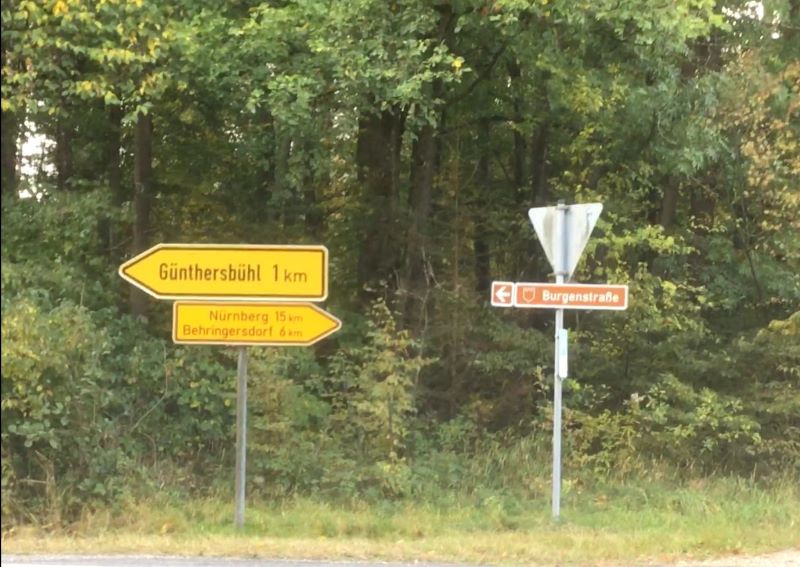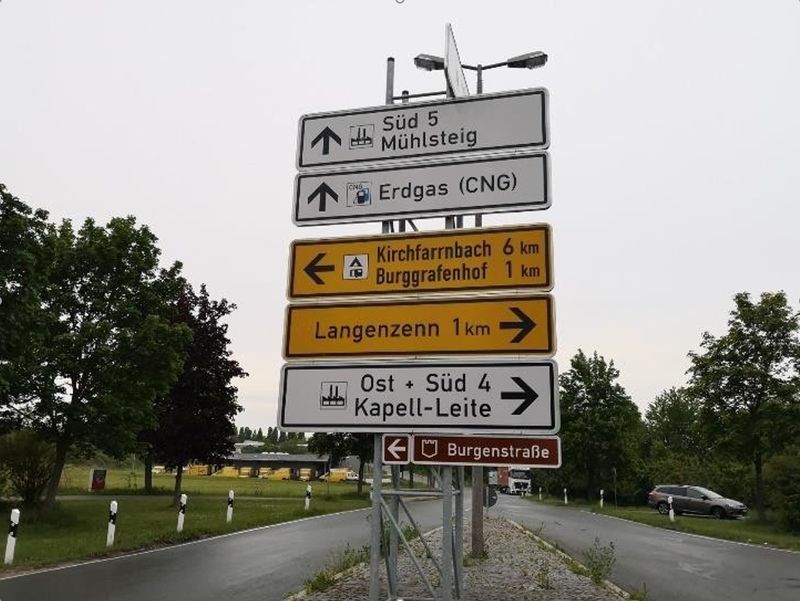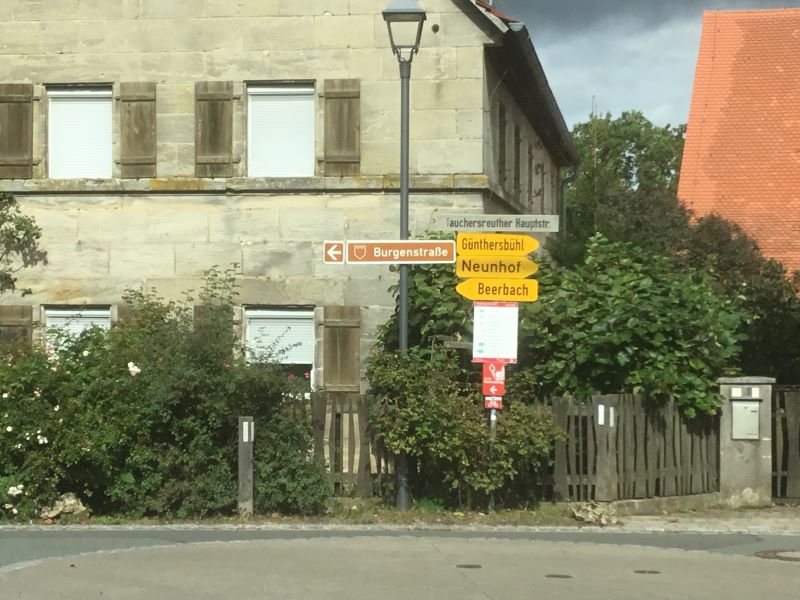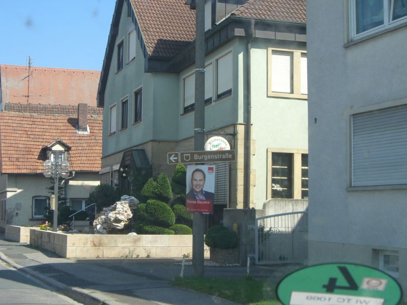 Standort: in Burggrub an der Kreuzung St2187/St2188, unter Wegweisern Richtung Heiligenstadt