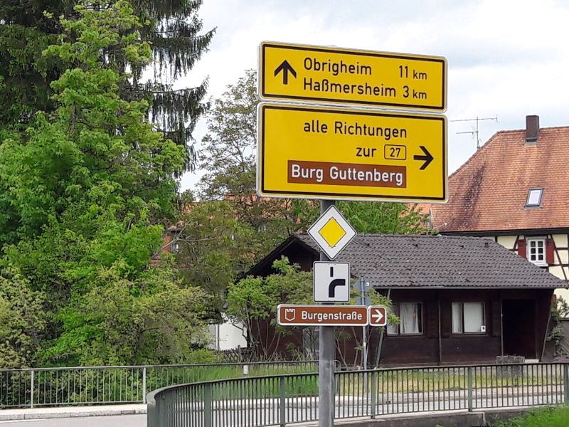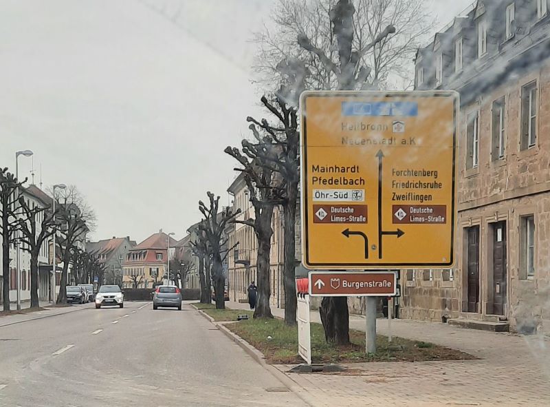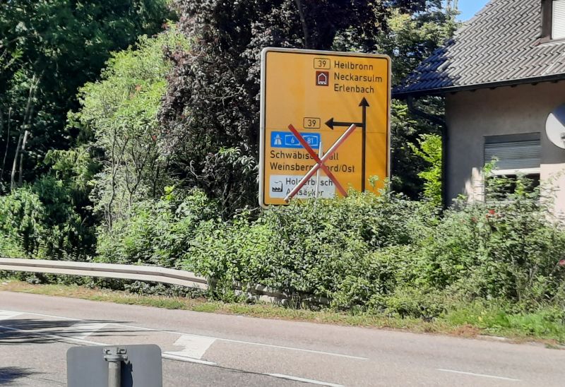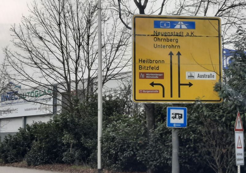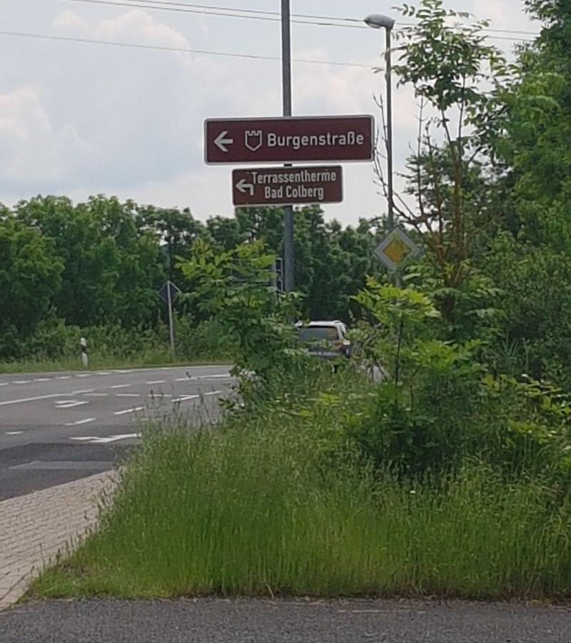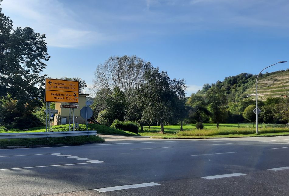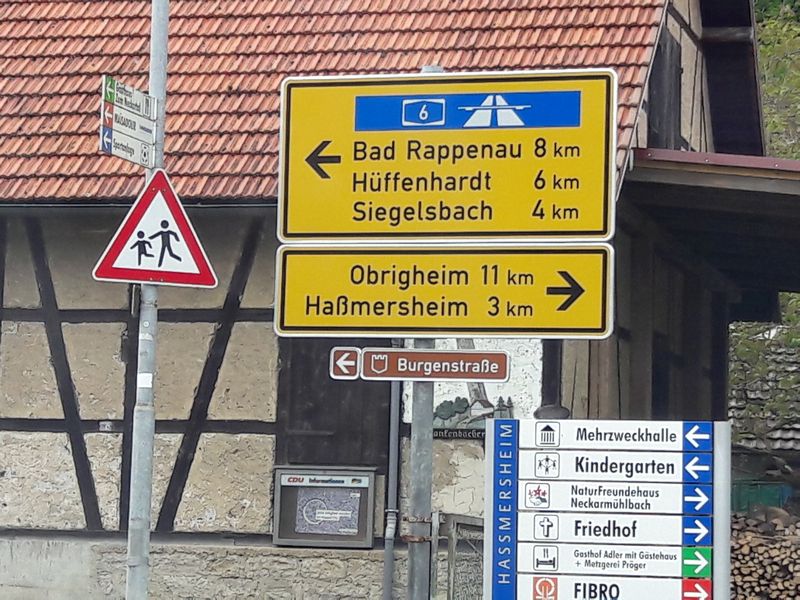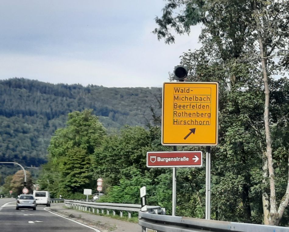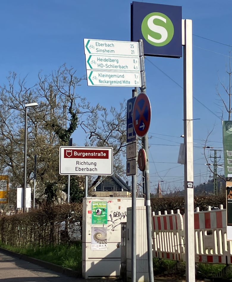Standort: Neckarsteinacher Straße, auf/unter Wegweiser Richtung Mosbach/Eberbach