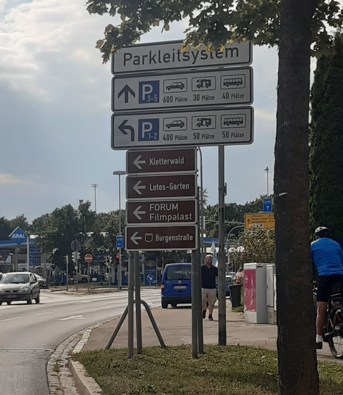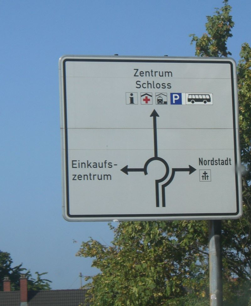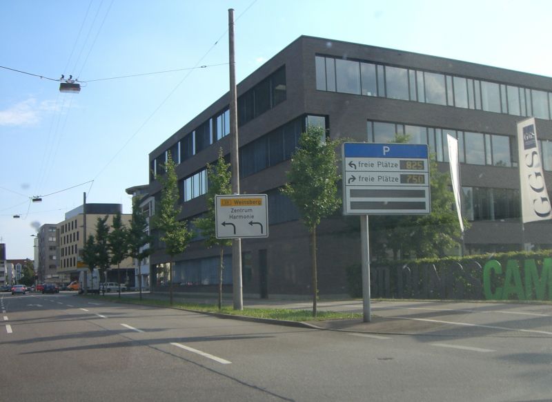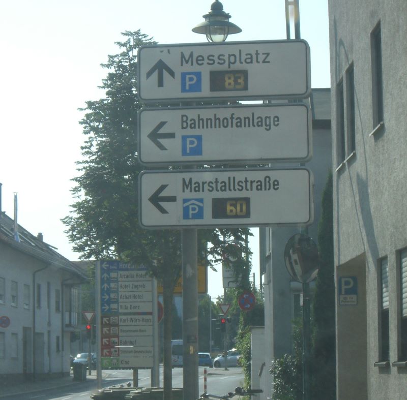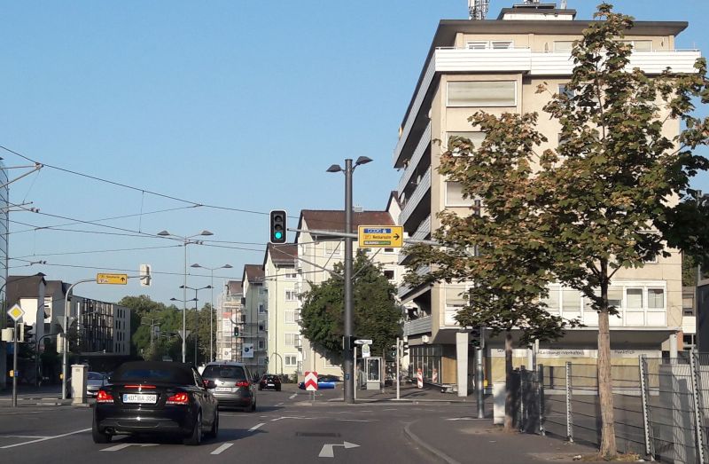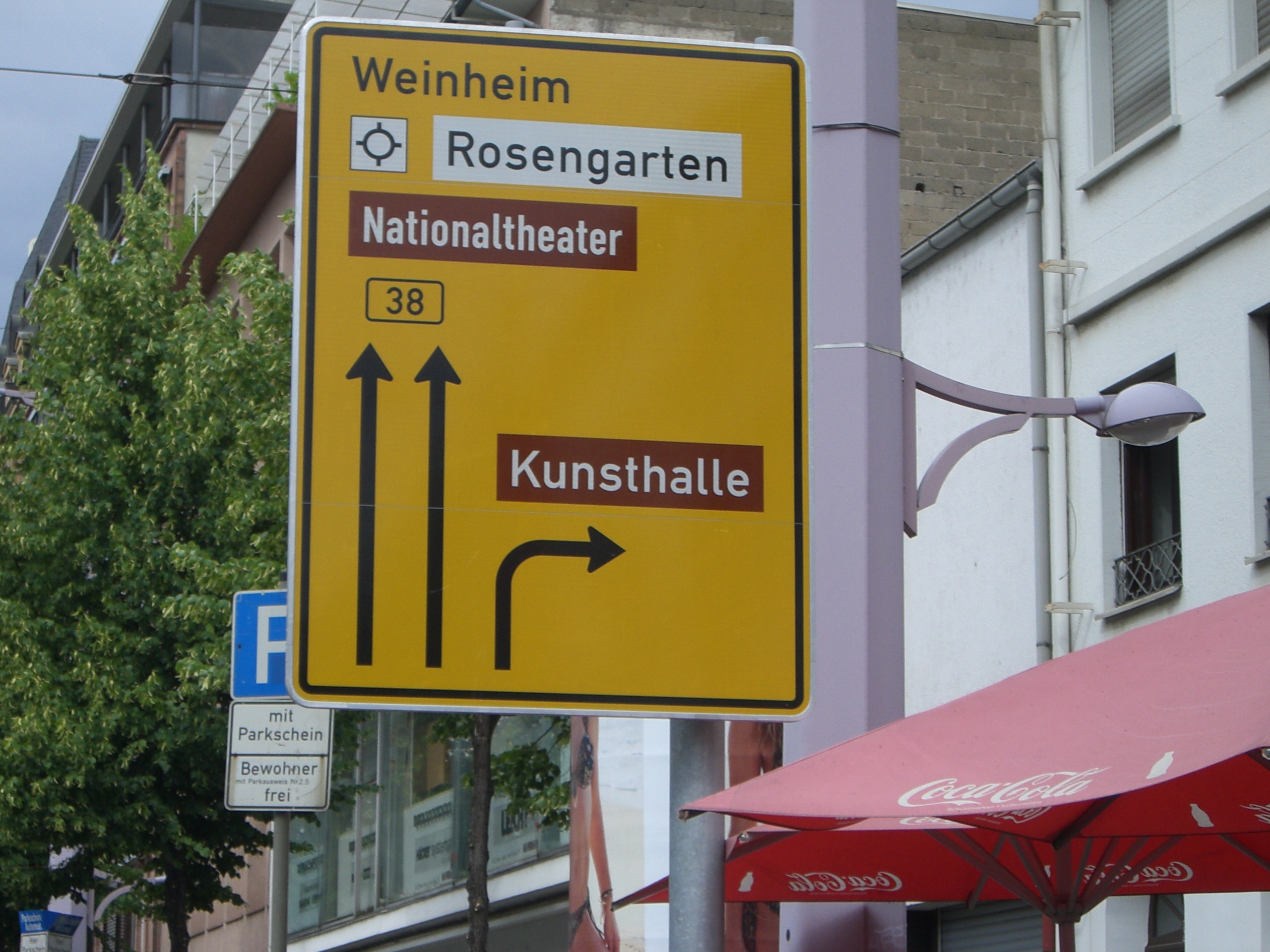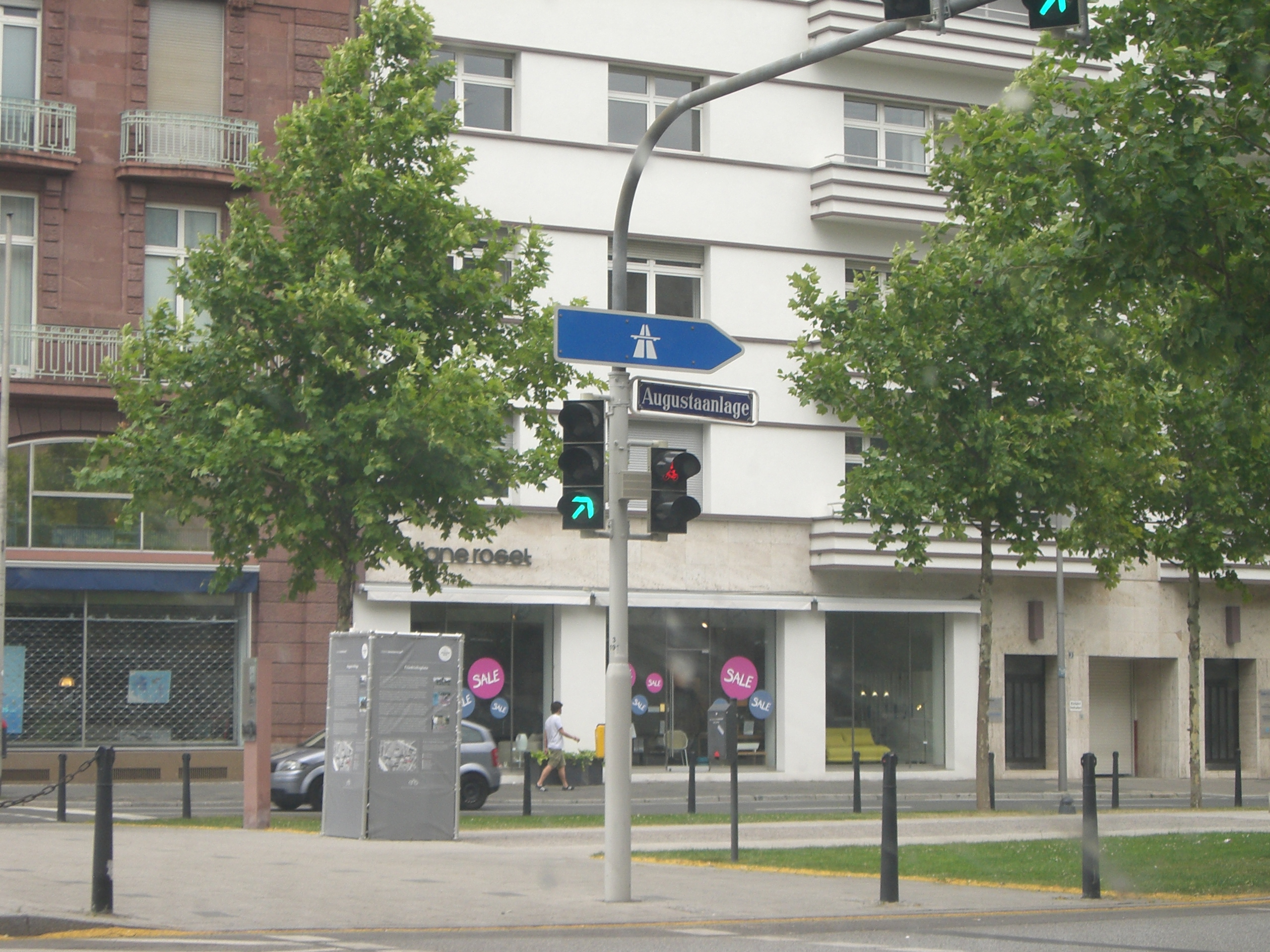 Standort: Ecke Friedrichsplatz/Augustaanlage, über Wegweiser Richtung Autobahn