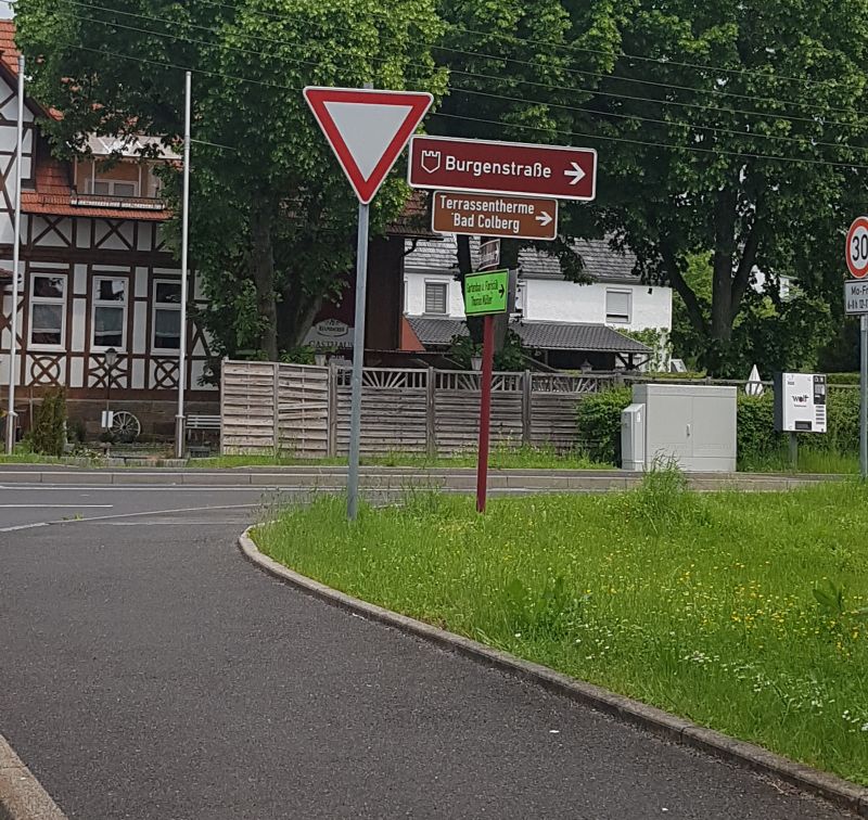 Standort: bei der Kreuzung Teichstraße/Trubachtalstraße, bei Gasthof "Alte Post" an vorhandenen Schildern