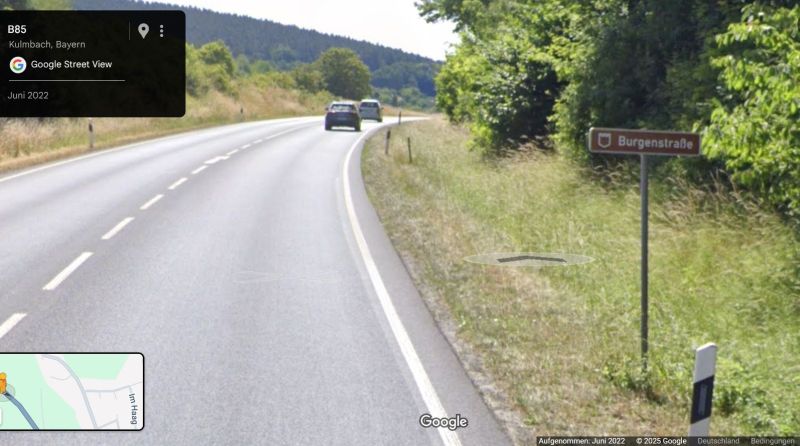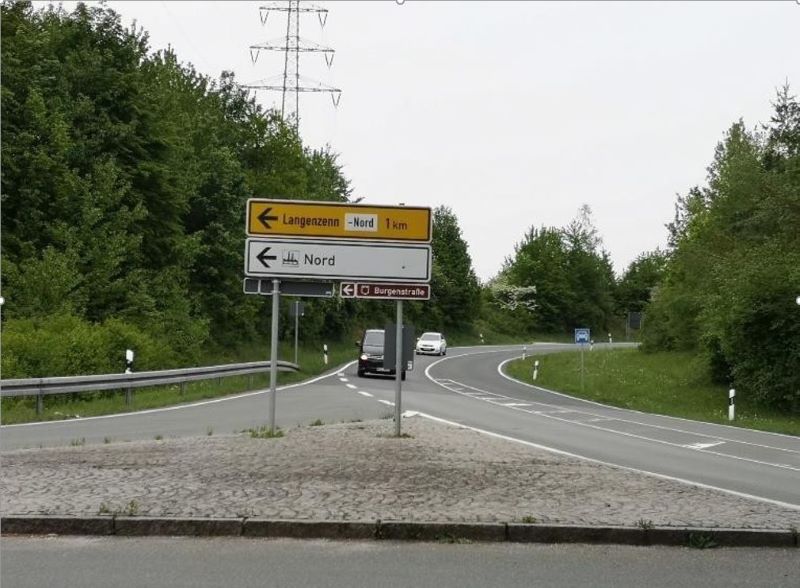 Standort: Bereich vor Eichenbirkig, von Waischenfeld kommend, Abzweigung Richtung Burg Rabenstein (weißes Schild)