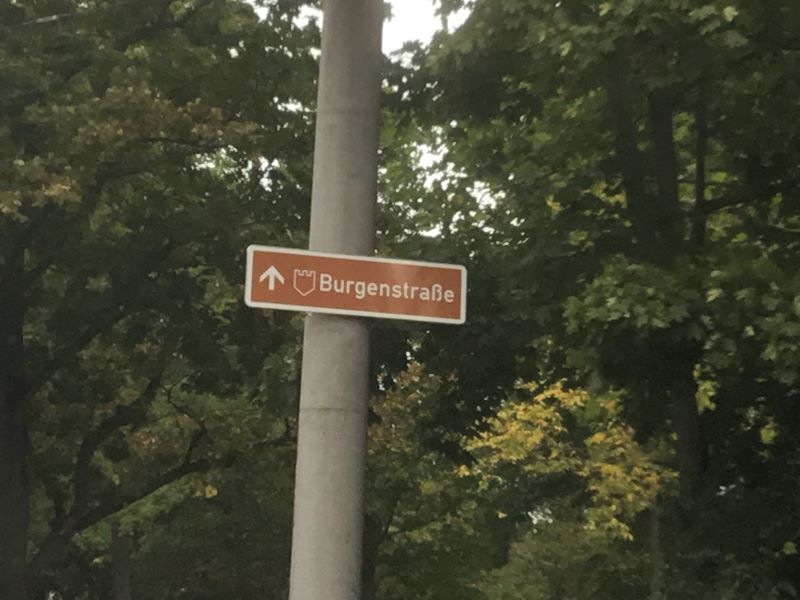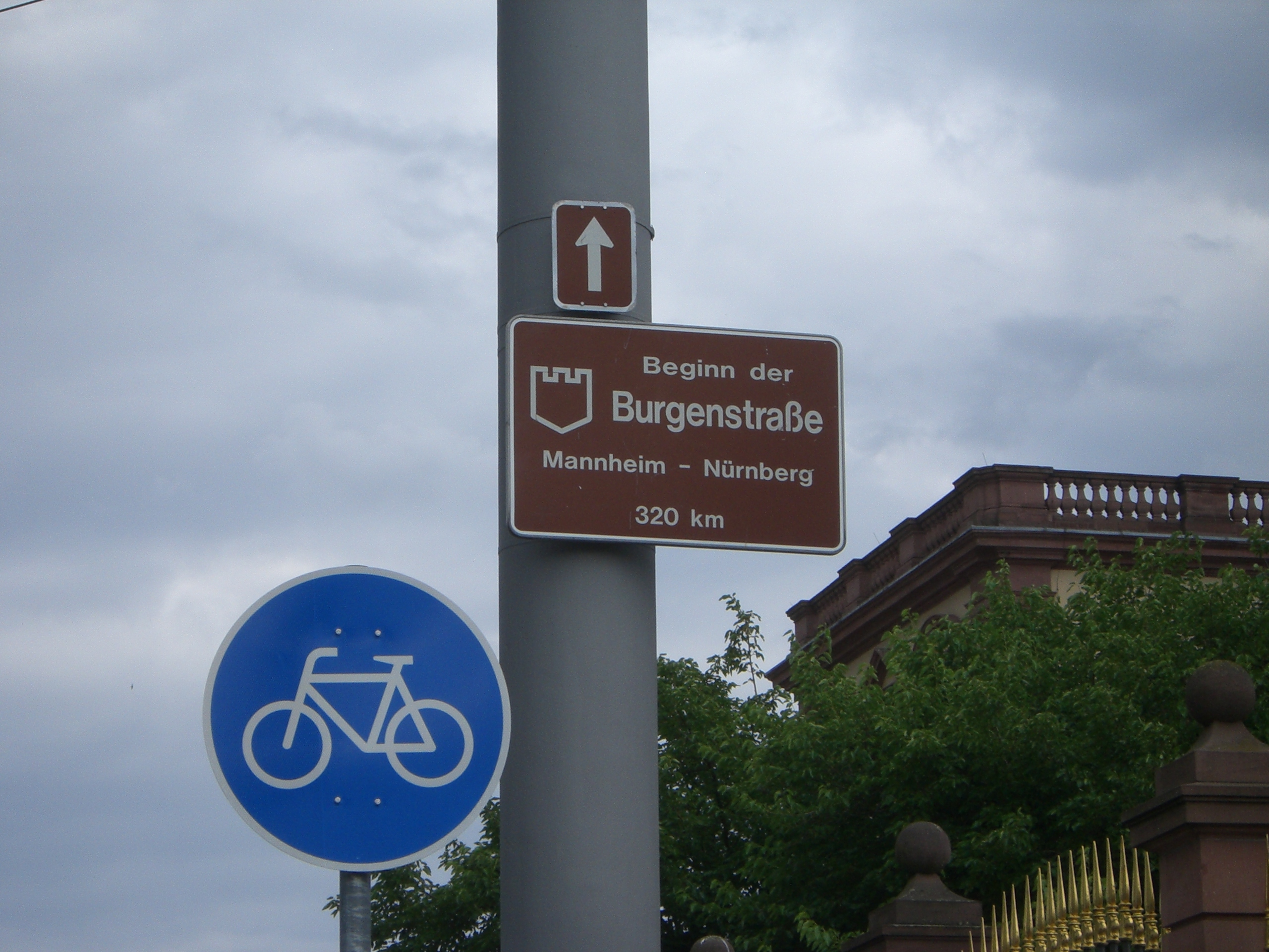 Standort: Bismarckstraße, Bereich vor Barockschloss Mannheim, Startschild Burgenstraße