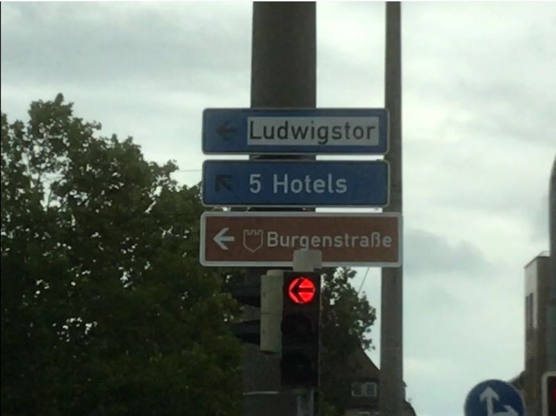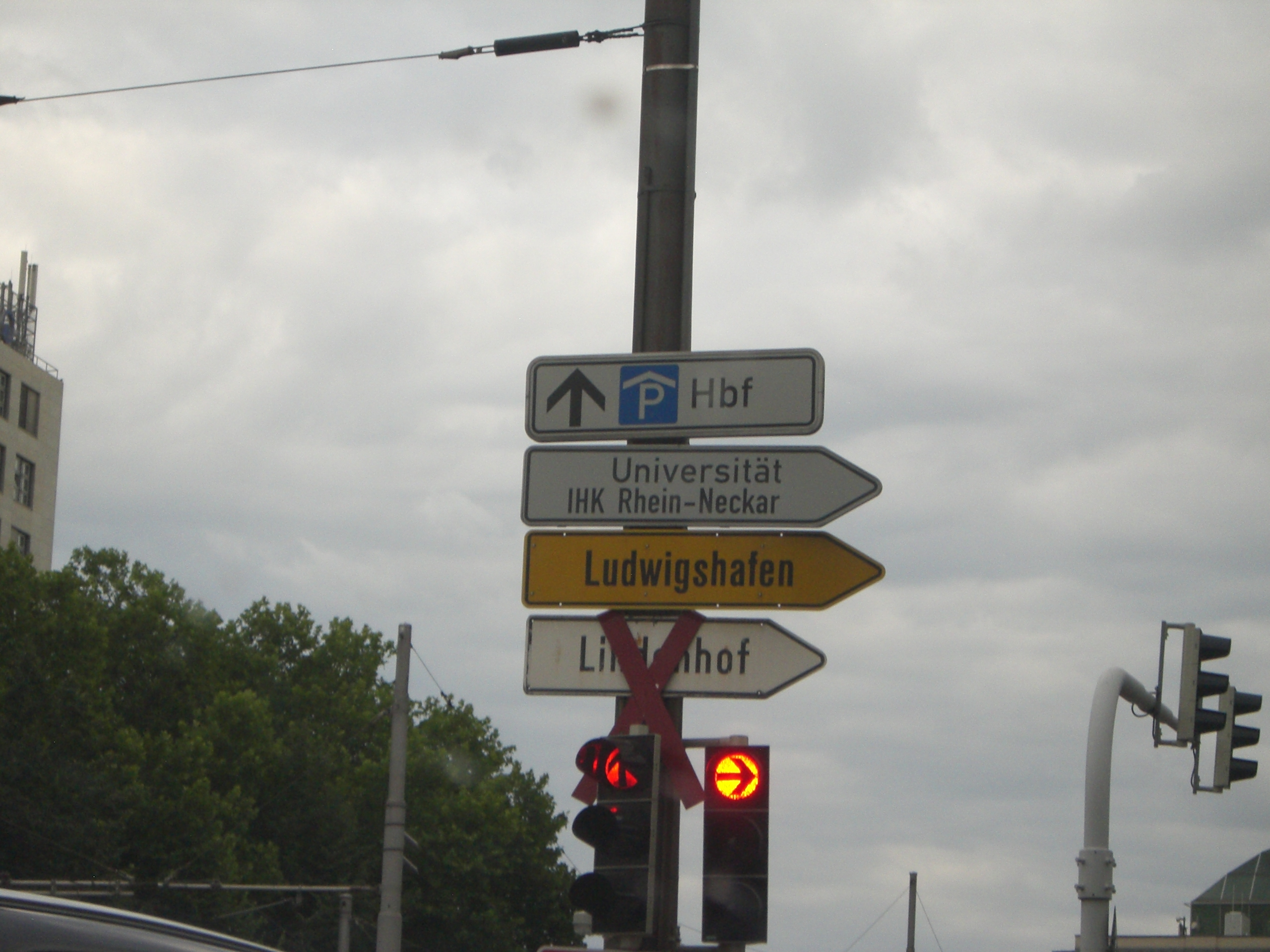 Aufstellung: AUSTAUSCHEN Standort: Bismarckstraße, Bereich vor Barockschloss Mannheim, Startschild Burgenstraße Pfeil: GERADEAUS (kann bleiben) Bereisung: 25.06.2017