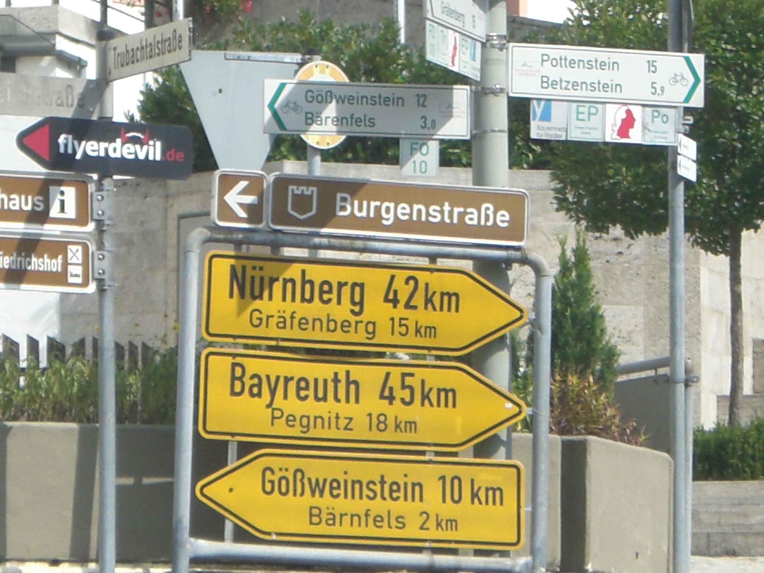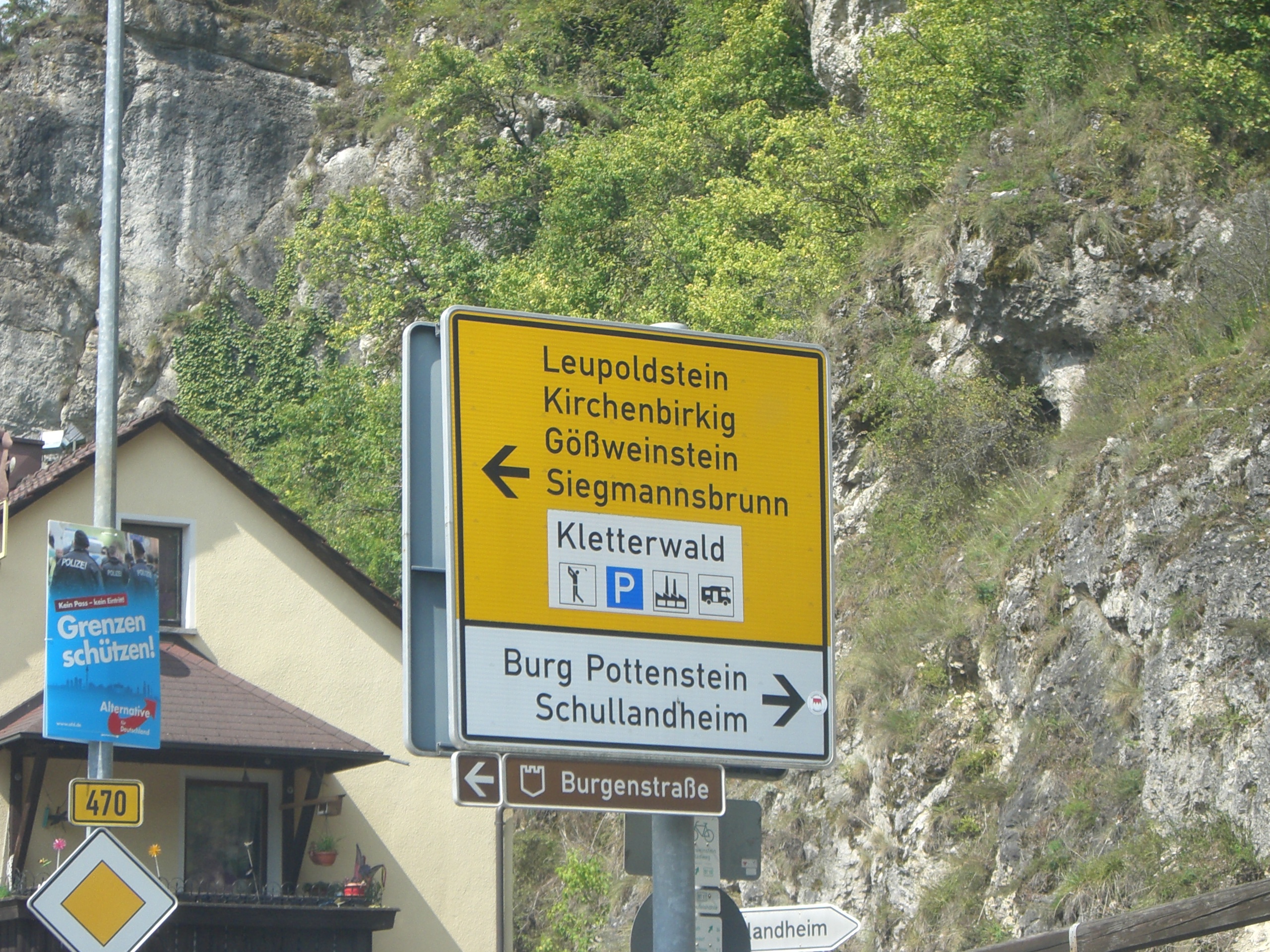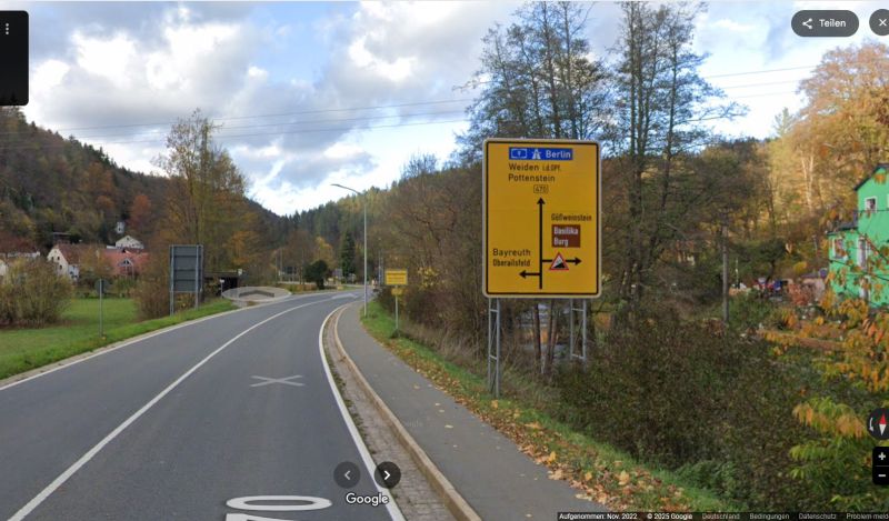Standort: in Pottenstein auf B 470 vor Abzweigung in St 2163, unter Wegweiser Richtung Gößweinstein