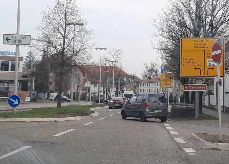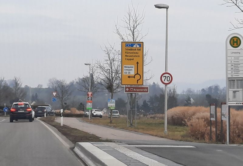 Standort: Bahnhofstraße (B 37), bei S-Bahn-Schild am Bahnhof, an extra Mast -> Festlegung des neuen Standortes und die Art des Schildes durch LRA Rhein-Neckarkreis, Frau Edinger; von allen beteiligten Behörden genehmigt lt. Nachricht Frau Edinger vom 03.02.2021