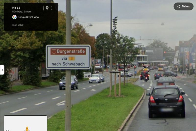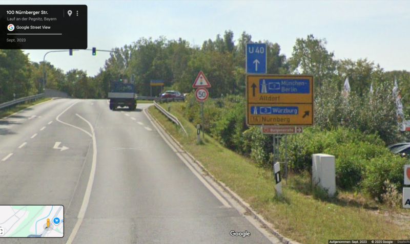 Standort: an der B 14 (Laufer Straße) auf halber Strecke zwischen Erlenstegen und Ortseingang Lauf a.d.P., im Bereich Ortsausgang Behringersdorf