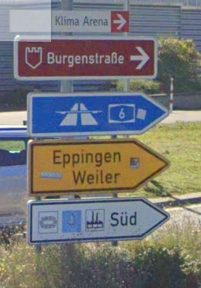 Aufstellung: Sommer 2023 - Zeichen 386.2 mit Bezugsziel "Richtung Eberbach" , Format (alte Beschilderung im Laufe der Jahre abgebaut)