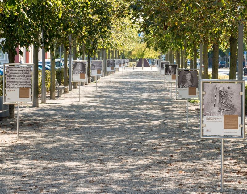 In der Bahnhofanlage gibt es mit der "Schwetzinger Zeitreise" ein begehbares Geschichtsbuch, das mit einem Parcours von 28 Bild- und Texttafeln durch die Vergangenheit der Stadt führt. Beginnend im Neolithikum und endend zu Anfang des 20. Jahrhunderts erzählen - sofern möglich - historische Persönlichkeiten von markanten Stationen der lokalen Historie. Eingedenk dessen, "dass Menschen zu jeder Zeit Geschicke lenken, historische Wendepunkte oder Meilensteine setzen.