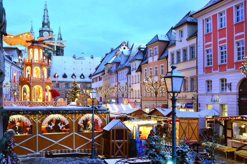 Baroque facades and the two large churches form the atmospheric and distinctive backdrop for the Christmas market on Montgelas-Platz and Martin-Luther-Platz in the middle of the old town. The old town and its centuries-old traditions in a modern form.