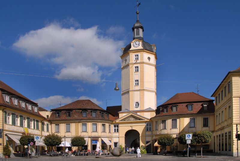The 47-metre high gate tower in its present form was built in 1750/51 by order of Margrave Karl Wilhelm Friedrich von Brandenburg-Ansbach under the margrave's agricultural inspector Johann David Steingruber. Today the tower building is used by local associations.