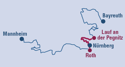 Drive along the Burgenstraße to Lauf an der Pegnitz (Nuremberg - Lauf an der Pegnitz about 18 km)