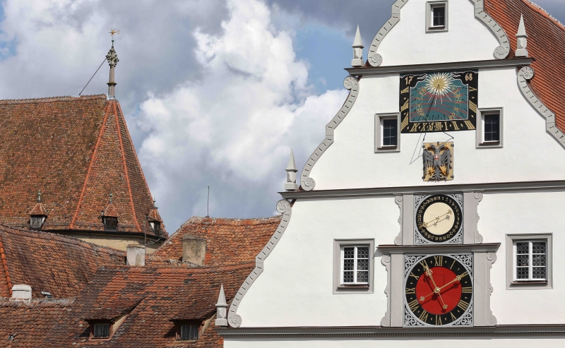 The monumental town hall occupies an entire long side of the market square, which is in stark contrast to the little houses in the narrow alleys of the old town and is more reminiscent of a castle. The impressive complex reflects the pride of the bourgeoisie in the former Free Imperial City, which was an important metropolis in the Holy Roman Empire of the German Nation until the 30-year war. It combines a Gothic part with the town hall tower as well as the emperor's hall and a magnificent front in Renaissance style with late Baroque arcades. The town hall tower can be climbed over 220 steps on foot and offers a magnificent view over the city and the Tauber valley from the viewing platform at a height of 60 metres.