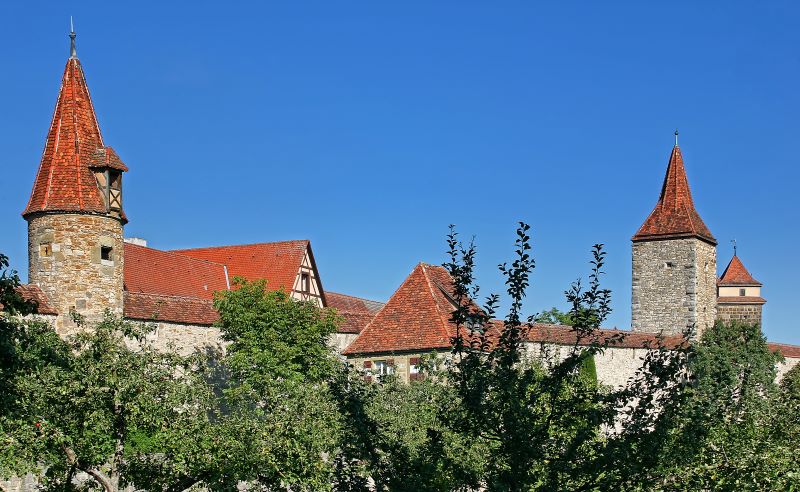 The castle garden, laid out in the 19th century, extends as a green oasis at the end of the Herrngasse beyond the castle gate. Lookout spires offer a magnificent view of the Tauber valley and the city silhouette.