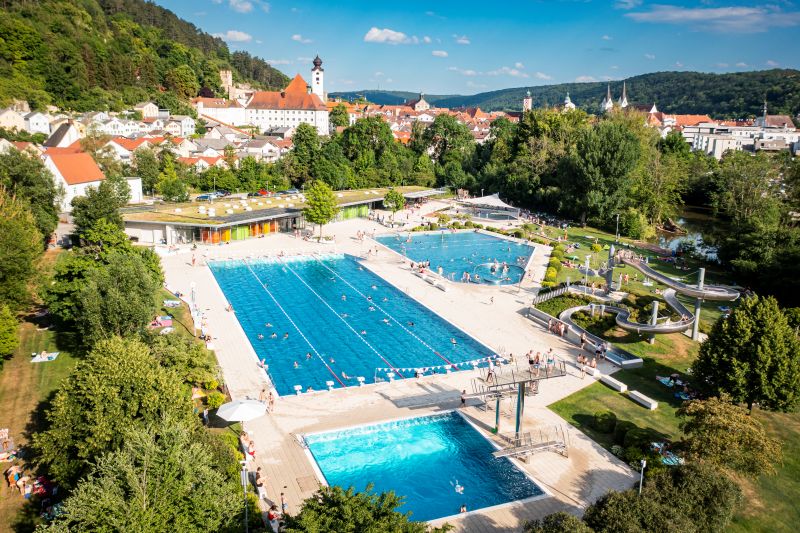 The Palm Beach in Stein is perfect for an eventful day for the whole family. The tropical wave pool offers optimal conditions for enjoyment. 14 unique adventure slides promise pure fun and action and little bathers have great fun in the lovingly designed children's pool. With a total of 20 themed saunas, the Palm Beach also promises an impressive variety of saunas. The high-quality thermal healing water in the Kristall Therme, which has been enriched with minerals from the center of the earth after thousands of years of storage, is a true source of health. Whether relaxation or fun and action: a perfect holiday awaits you at Palm Beach.